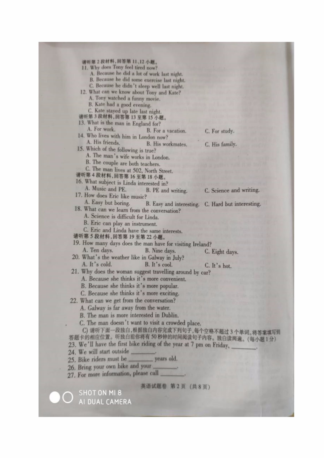 2019年江西新余中考英语试卷