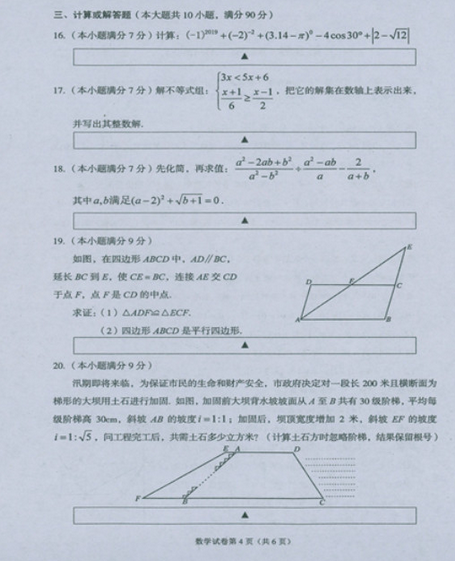 2019年四川遂宁中考数学试卷