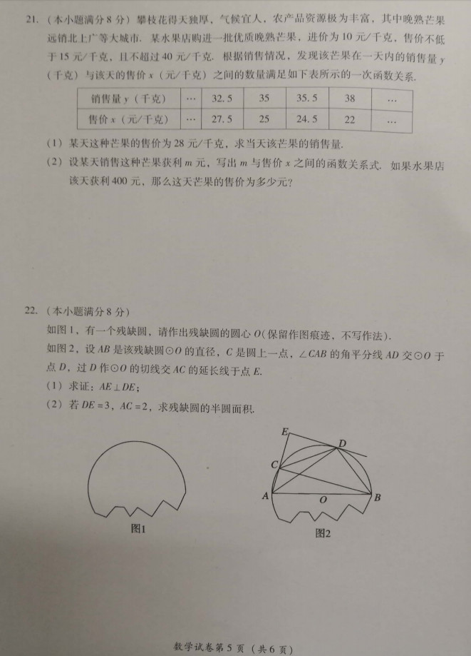 2019年四川攀枝花中考数学试卷