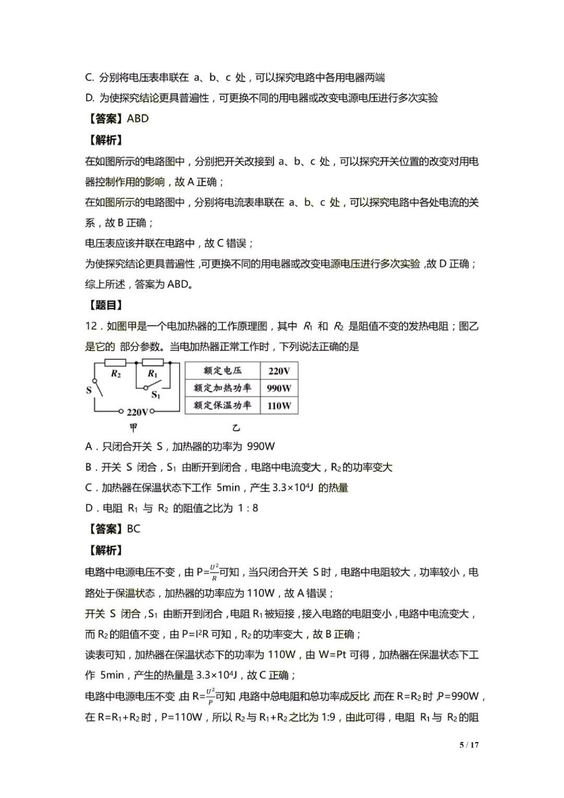 2019年山东青岛中考物理答案