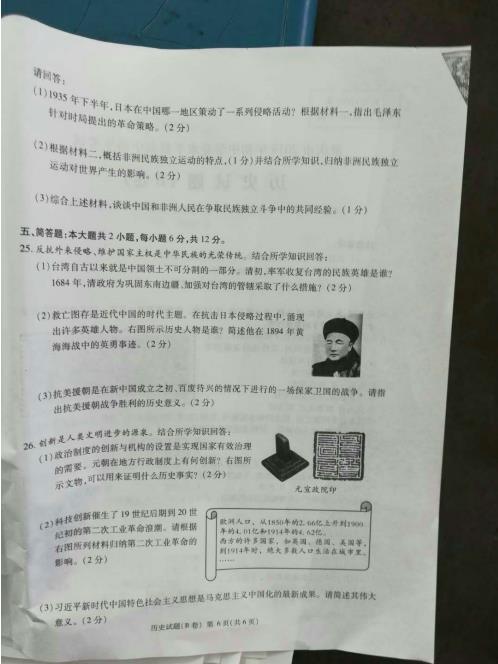 2019年重庆江北中考历史答案