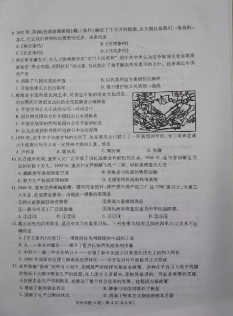 【#中考# #2019年重庆江北中考历史试卷A卷(已公布)#】2019年重庆江北中考历史考试已结束,©无忧考网中考频道搜集整理发布了“2019年重庆江北中考历史试卷A卷”,供考生们参考学习,小编预祝大家取得优异的成绩!
