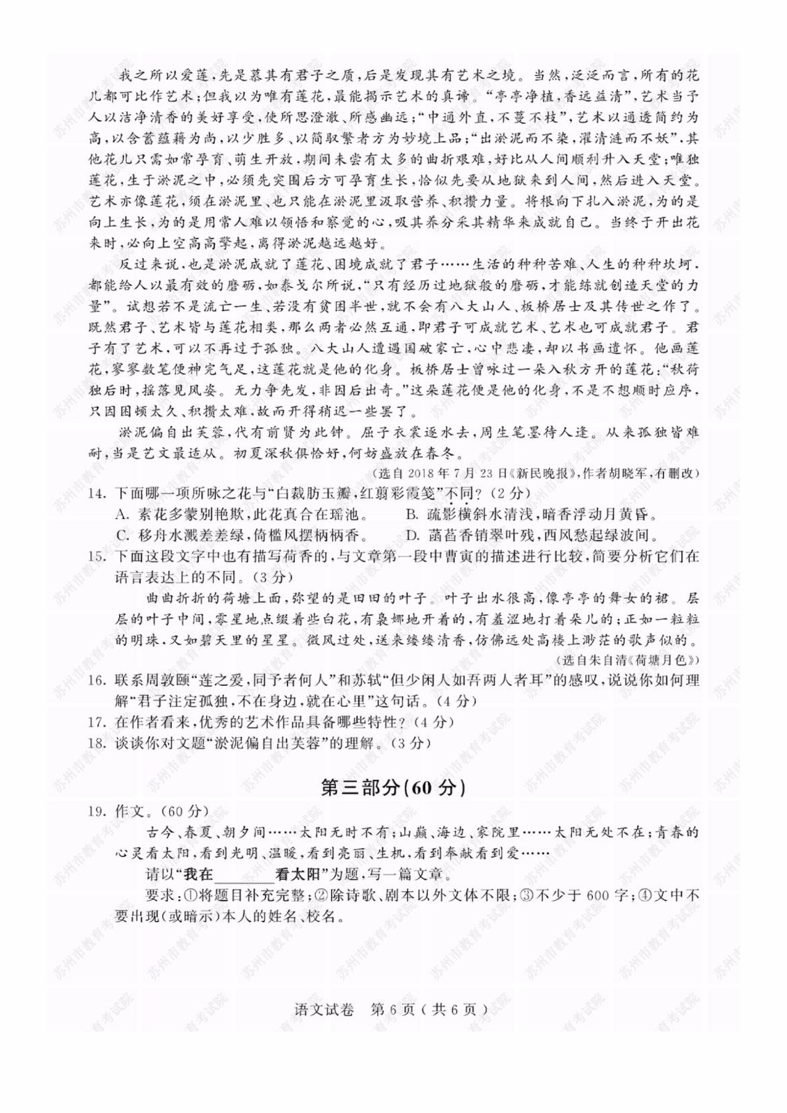 【#中考# #2019年江苏苏州中考语文试卷(已公布)#】2019年江苏苏州中考语文考试已结束,®无忧考网中考频道搜集整理发布了“2019年江苏苏州中考语文试卷”,供考生们参考学习,小编预祝大家取得优异的成绩!