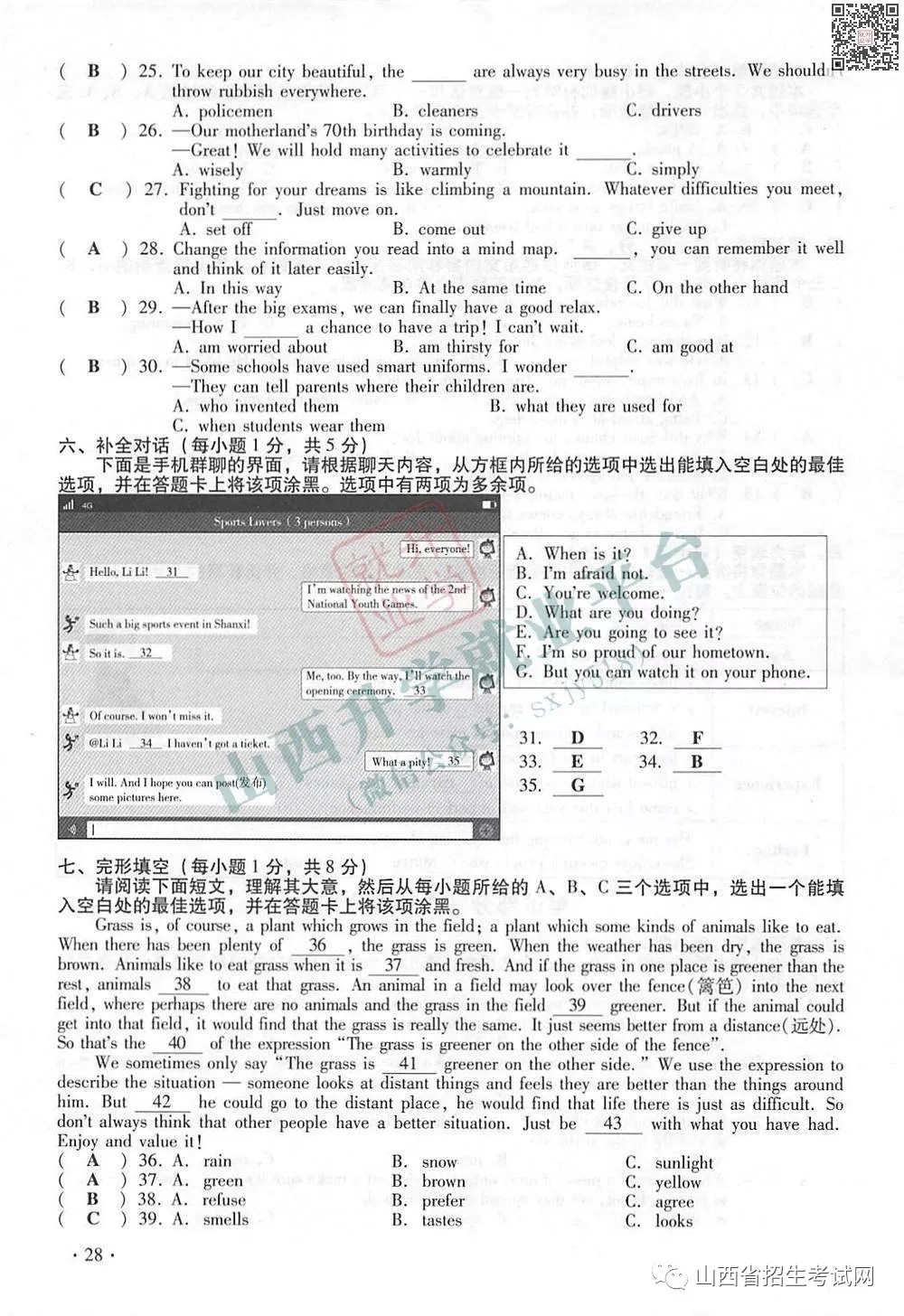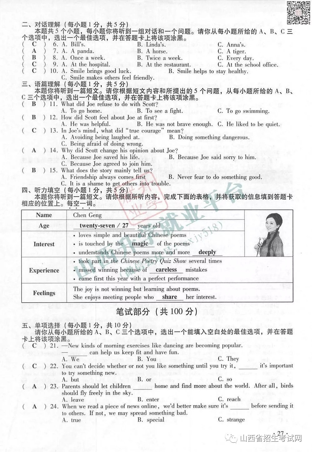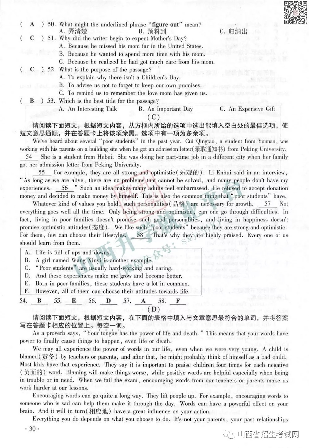 【#中考# #2019年山西临汾中考英语试卷(已公布)#】2019年山西临汾中考英语考试已结束,®无忧考网中考频道搜集整理发布了“2019年山西临汾中考英语试卷”,供考生们参考学习,小编预祝大家取得优异的成绩!