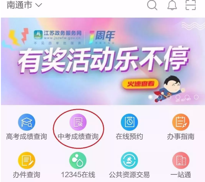 今年起,我市中考成绩可通过“南通百通”APP查询啦!建议各位考生和家长提前下载“南通百通”APP。打开APP首页,找到顶部“2019年中考成绩查询”。