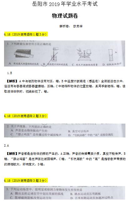 【#中考# #2019年湖南岳阳中考物理试题及答案(已公布)#】2019年湖南岳阳中考物理考试已结束,©无忧考网中考频道搜集整理发布了“2019年湖南岳阳中考物理试题及答案”,供考生们参考学习,小编预祝大家取得优异的成绩!