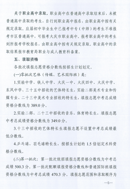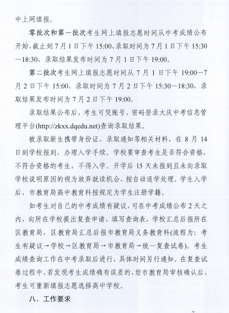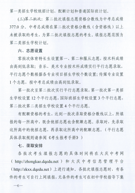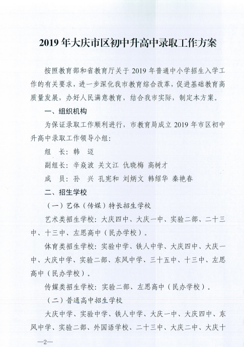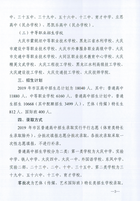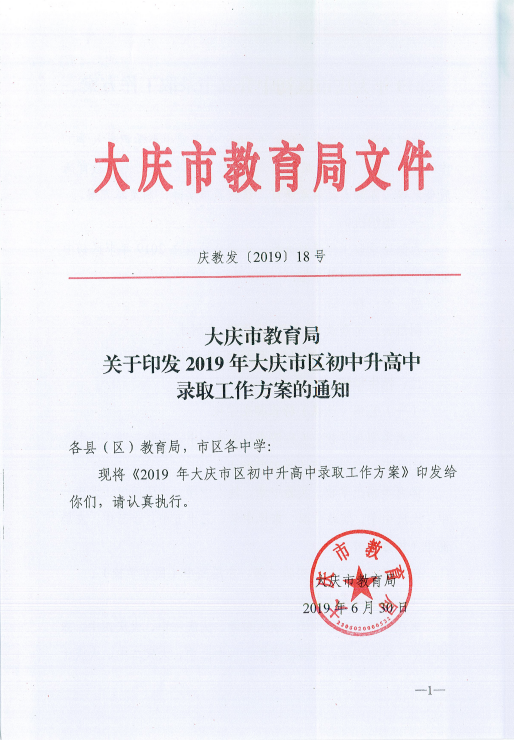 黑龙江:关于印发2019年大庆市区初中升高中录取工作方案的通