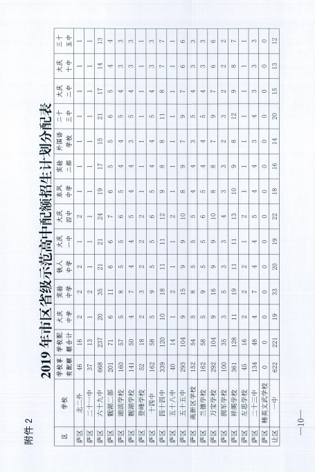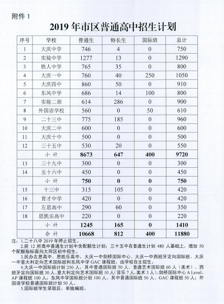 黑龙江:关于印发2019年大庆市区初中升高中录取工作方案的通知