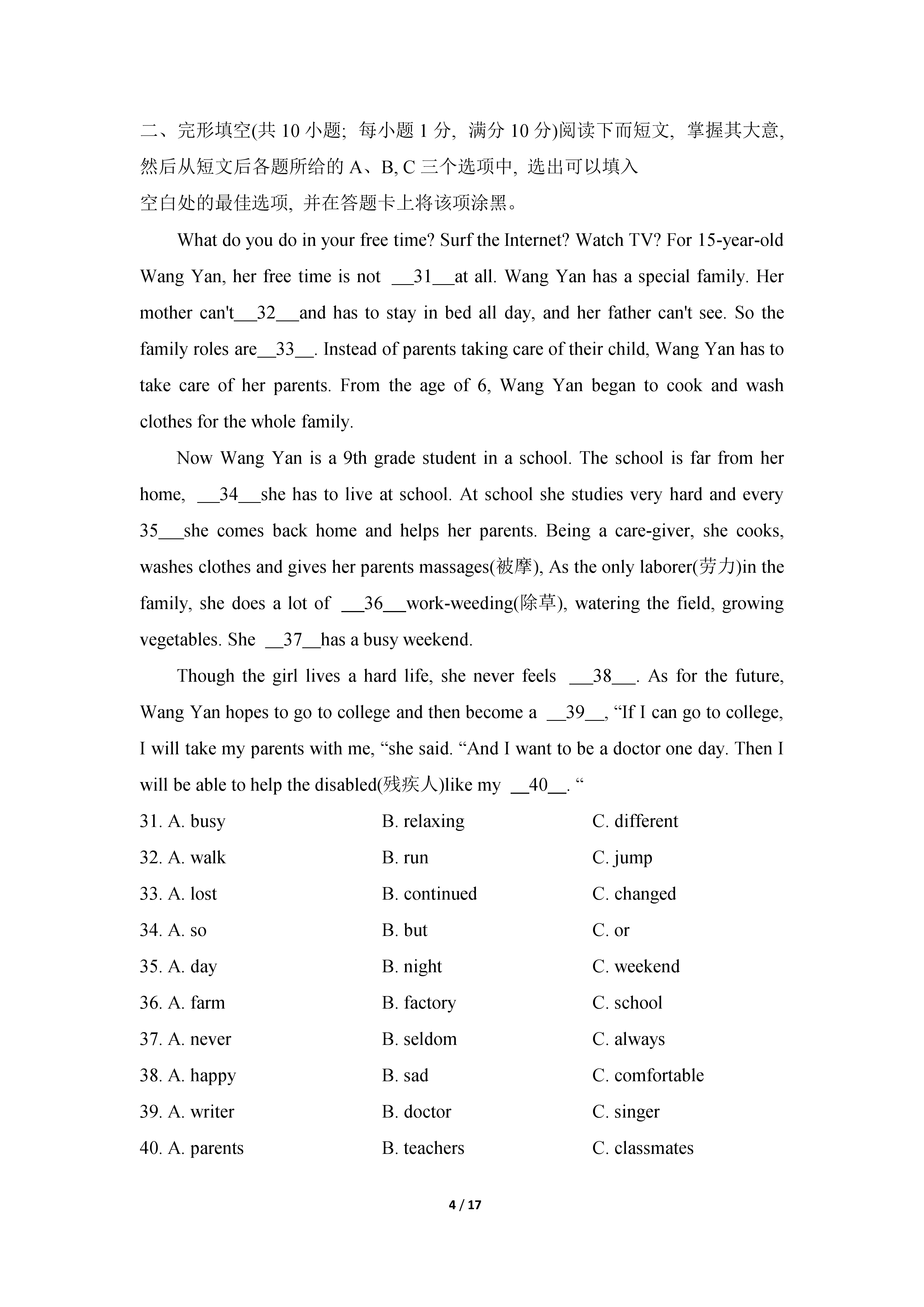【#中考# #2019年山东聊城中考英语试卷(已公布)#】2019年山东聊城中考英语考试已结束,©无忧考网中考频道搜集整理发布了“2019年山东聊城中考英语试卷”,供考生们参考学习,小编预祝大家取得优异的成绩!
