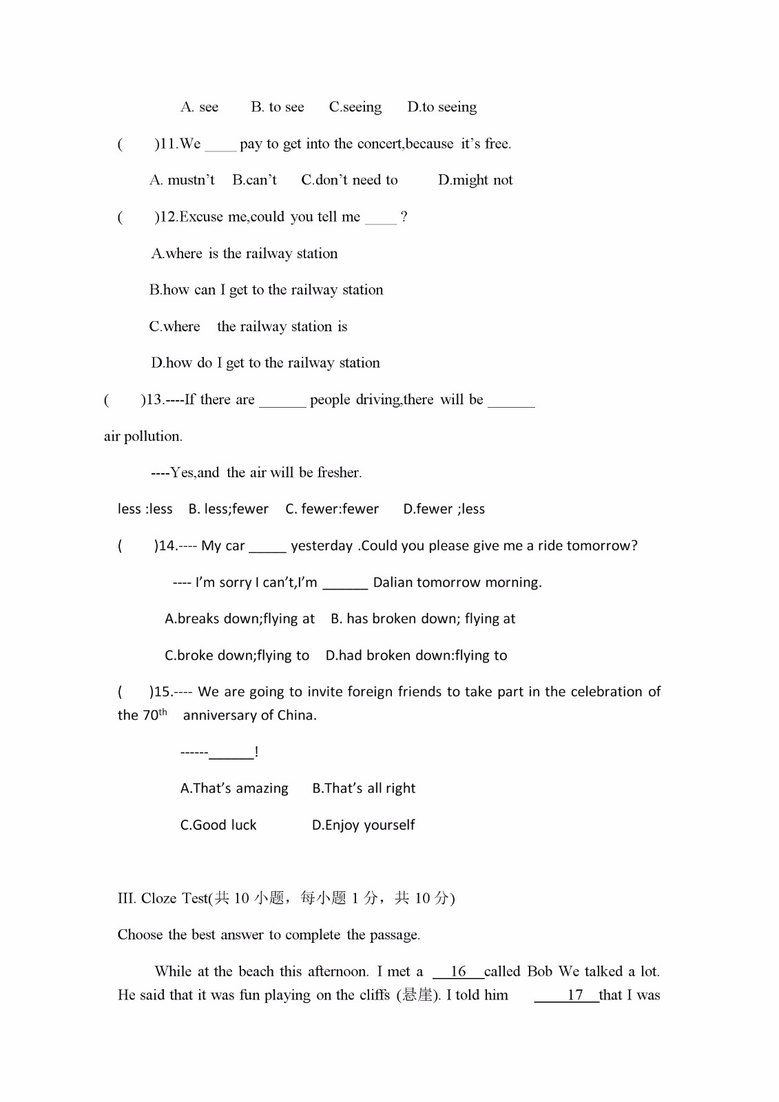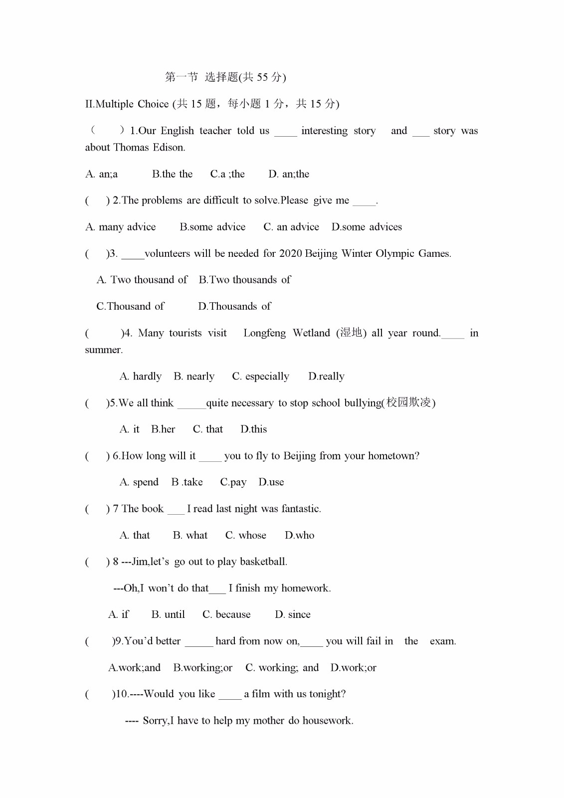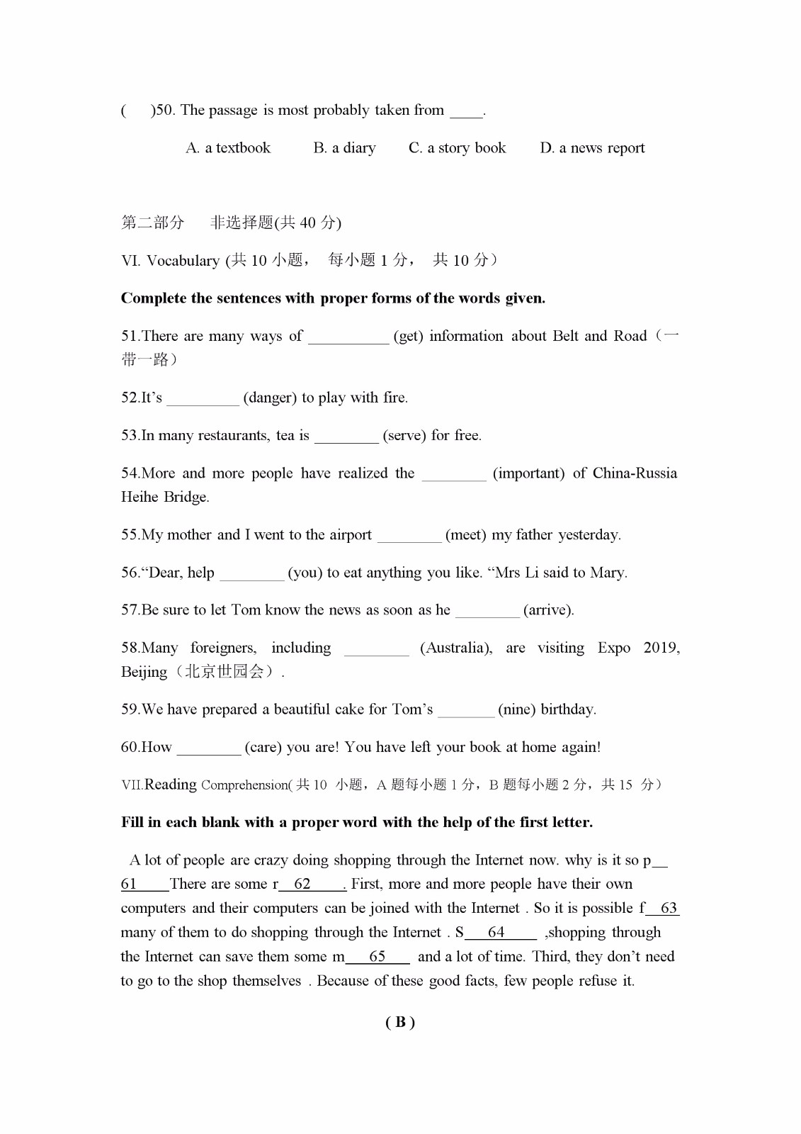 【#中考# #2019年黑龙江大庆中考英语试卷(已公布)#】2019年黑龙江大庆中考英语考试已结束,©无忧考网中考频道搜集整理发布了“2019年黑龙江大庆中考英语试卷”,仅供考生们参考学习,小编预祝大家取得优异的成绩!