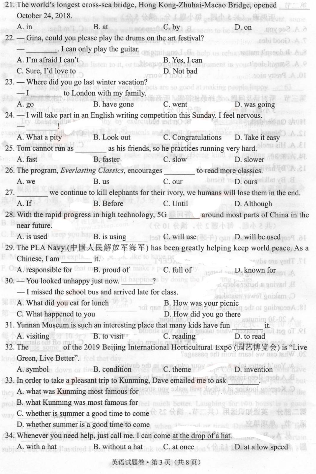 【#中考# #2019年云南昆明中考英语试卷(已公布)#】2019年云南昆明中考英语考试已结束,©无忧考网中考频道搜集整理发布了“2019年云南昆明中考英语试卷”,仅供考生们参考学习,小编预祝大家取得优异的成绩!