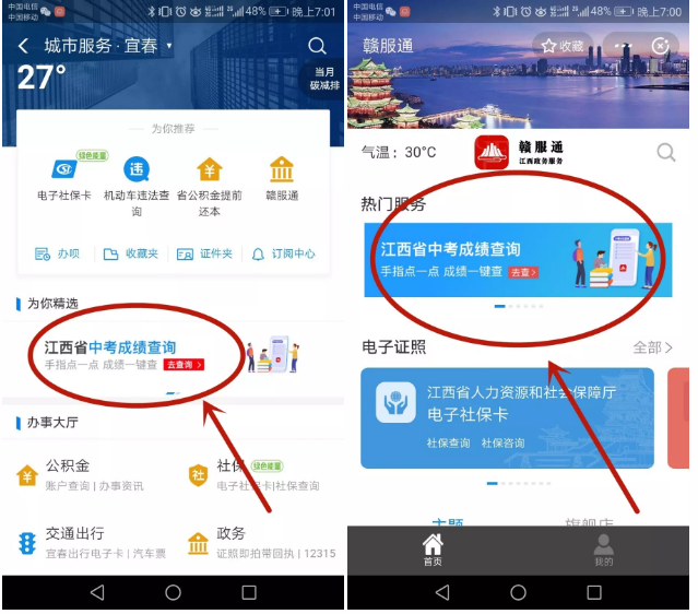 第三步:选择任意搜索结果会出现以下界面,点击“江西省中考成绩查询”