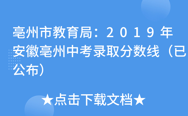 2019年安徽亳州中考录取分数线已经公布,具体内容如下所示: