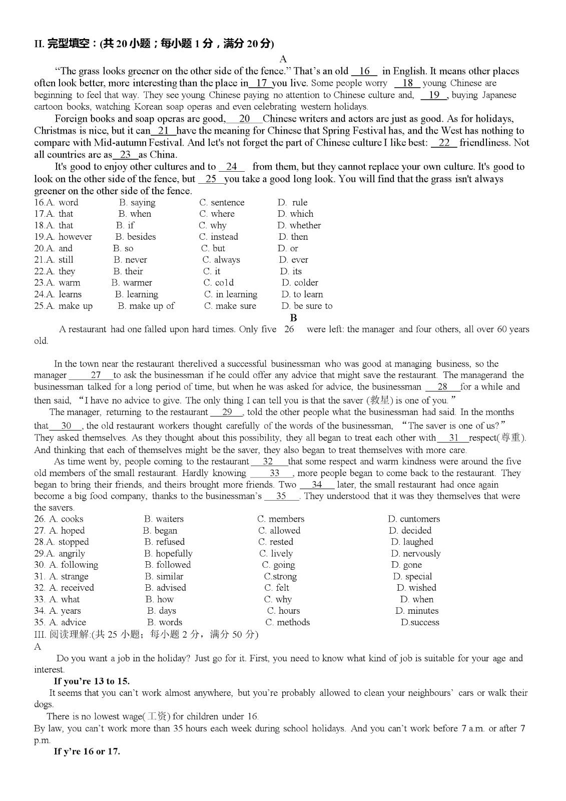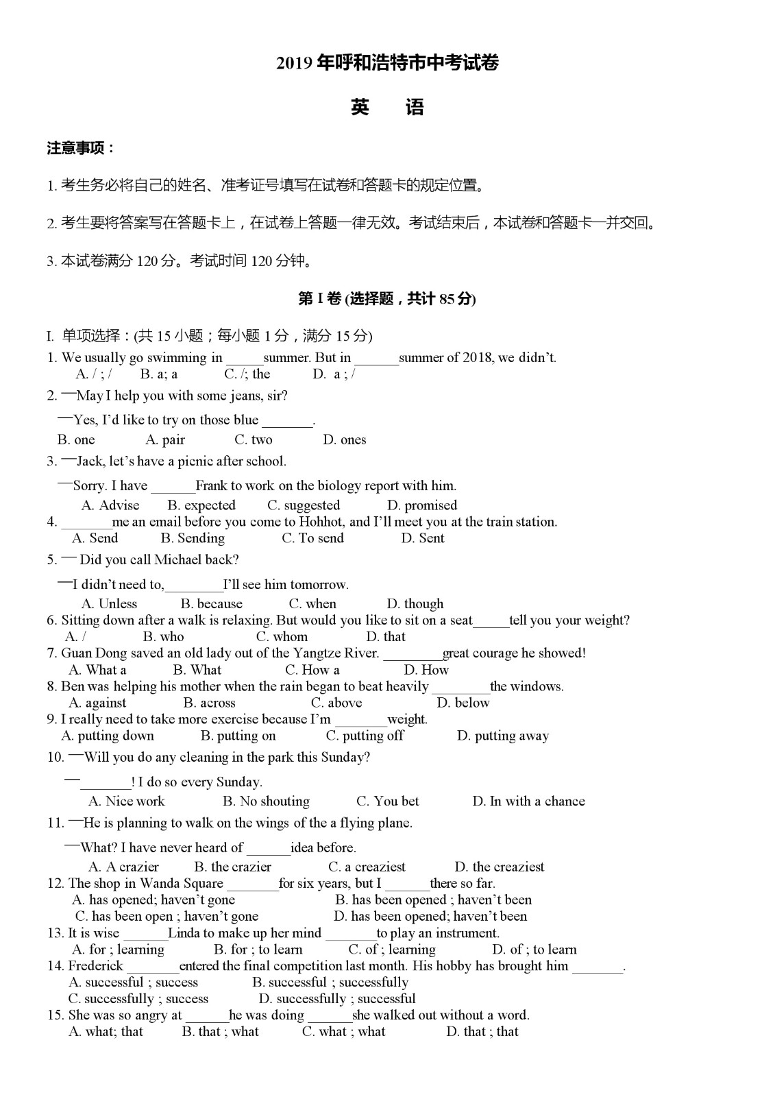 【#中考# #2019年内蒙古呼和浩特中考英语试卷(已公布)#】2019年内蒙古呼和浩特中考英语考试已结束,©无忧考网中考频道搜集整理发布了“2019年内蒙古呼和浩特中考英语试卷”,仅供考生们参考学习,小编预祝大家取得优异的成绩!