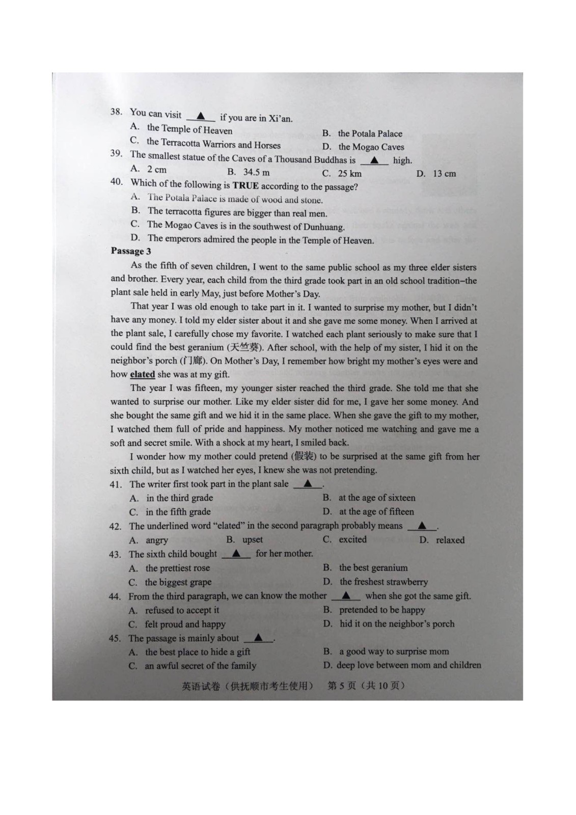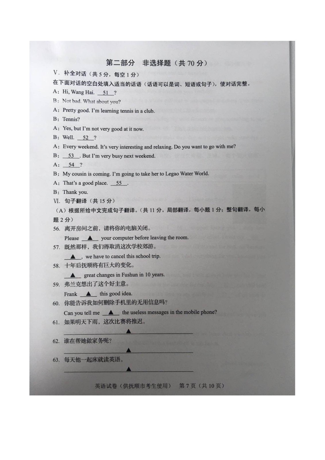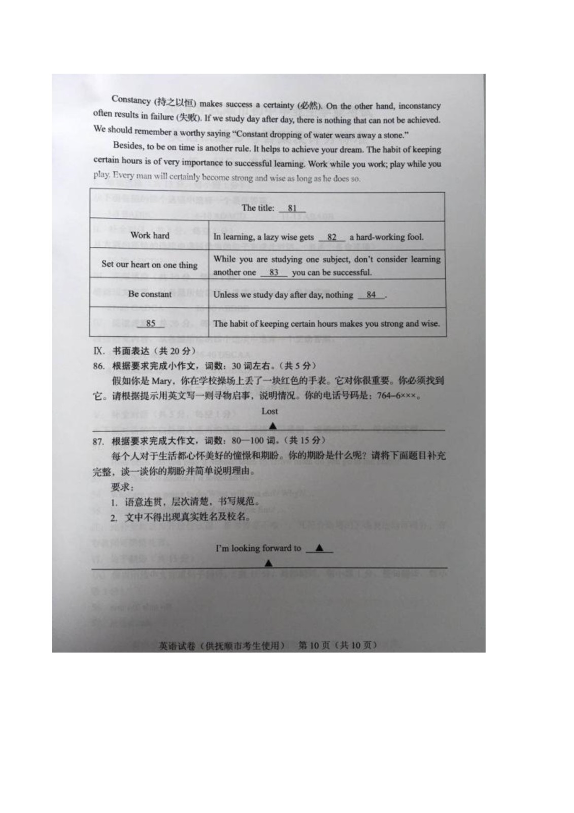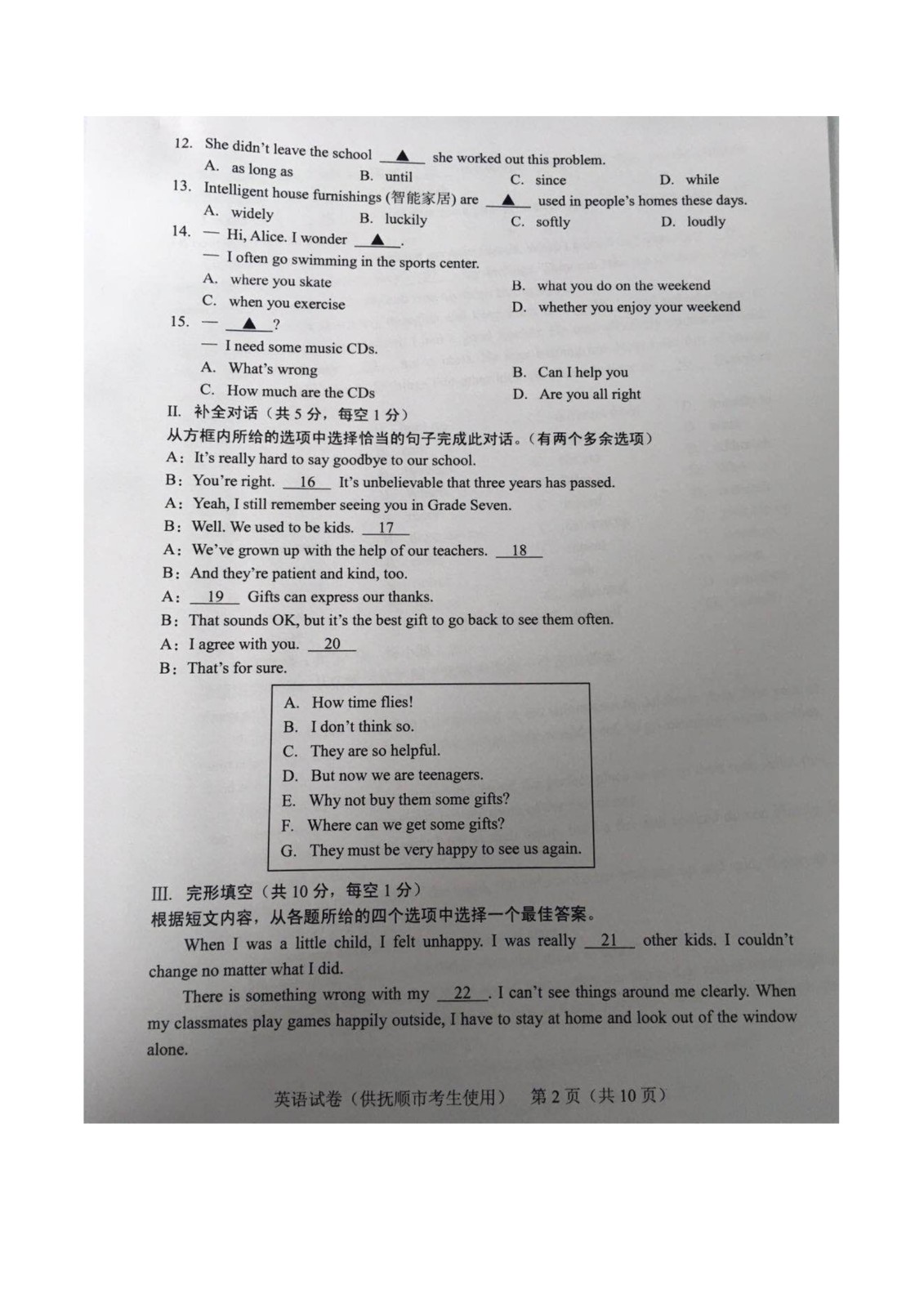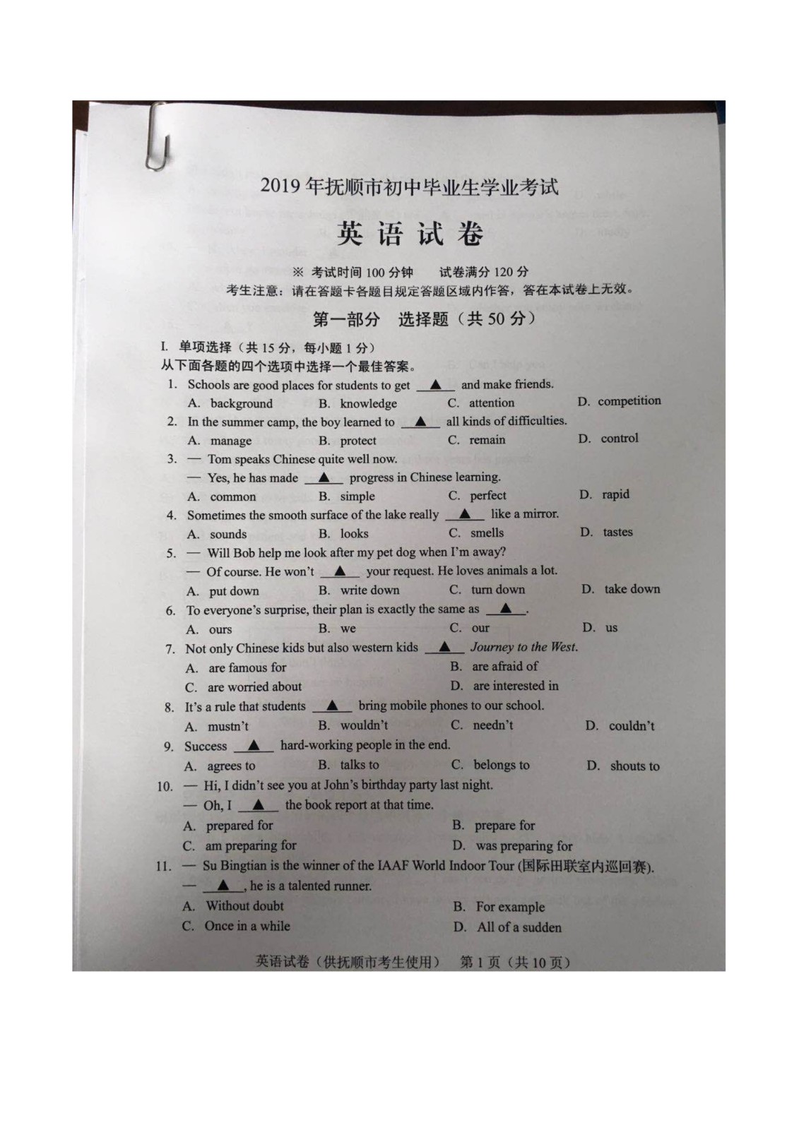 【#中考# #2019年辽宁抚顺中考英语试卷(已公布)#】2019年辽宁抚顺中考英语考试已结束,©无忧考网中考频道搜集整理发布了“2019年辽宁抚顺中考英语试卷”,供考生们参考学习,小编预祝大家取得优异的成绩!