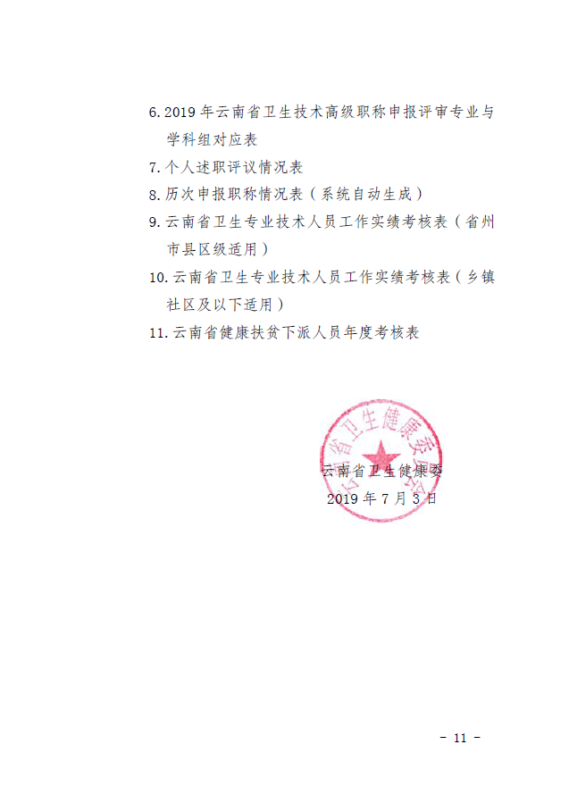 2019年云南省卫生技术高级职称和基层卫生高级职称申报评审工