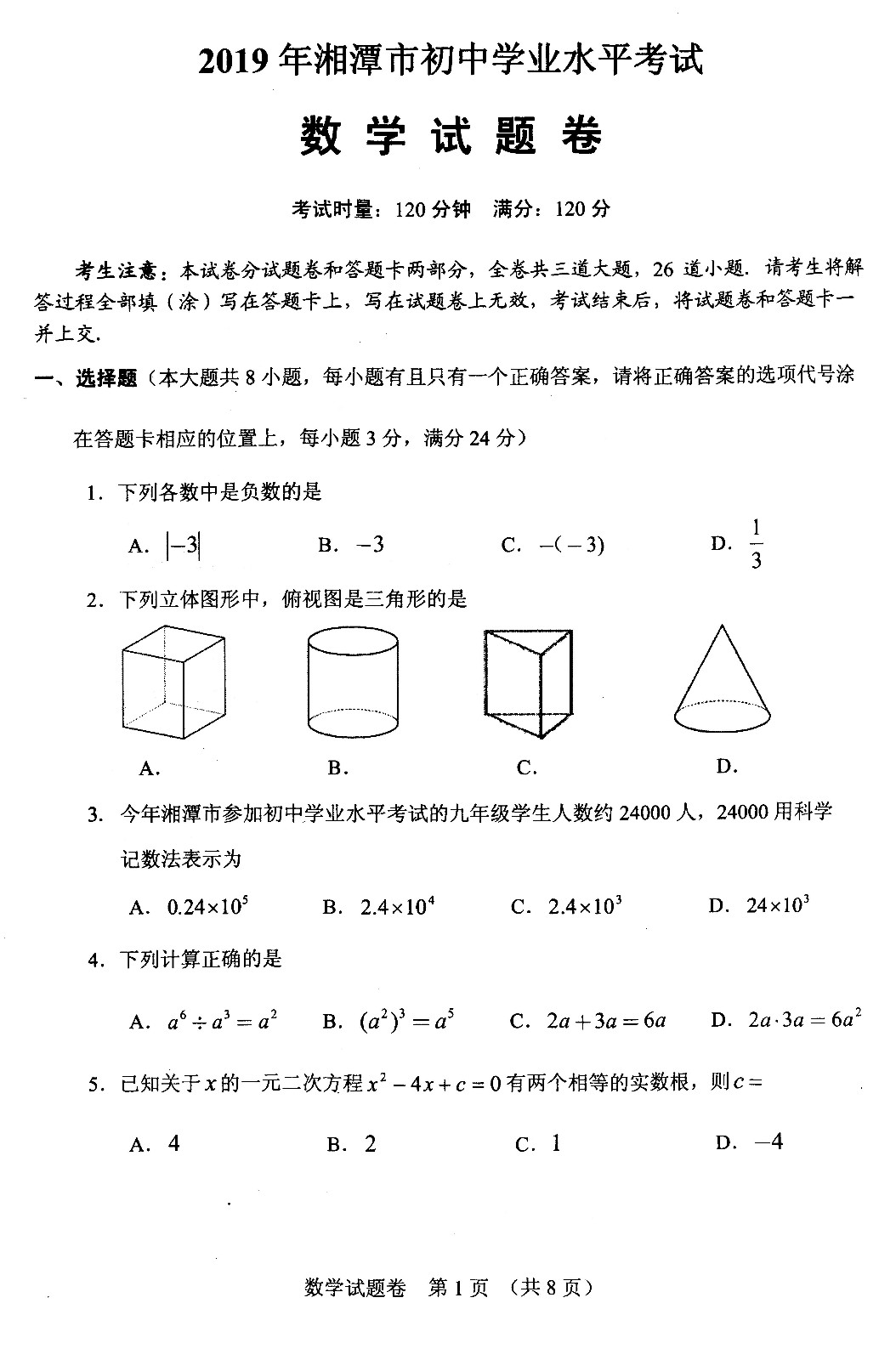 【#中考# #2019年湖南湘潭中考数学试卷(已公布)#】2019年湖南湘潭中考数学考试已结束,®无忧考网中考频道搜集整理发布了“2019年湖南湘潭中考数学试卷”,仅供考生们参考学习,小编预祝大家取得优异的成绩!