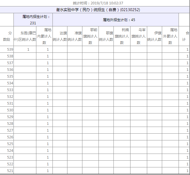考网从鄂尔多斯教育在线获悉,2019年内蒙古鄂尔多斯汉授普高统招志愿(540分-521分)志愿填报情况统计表已公布,具体情况如下: