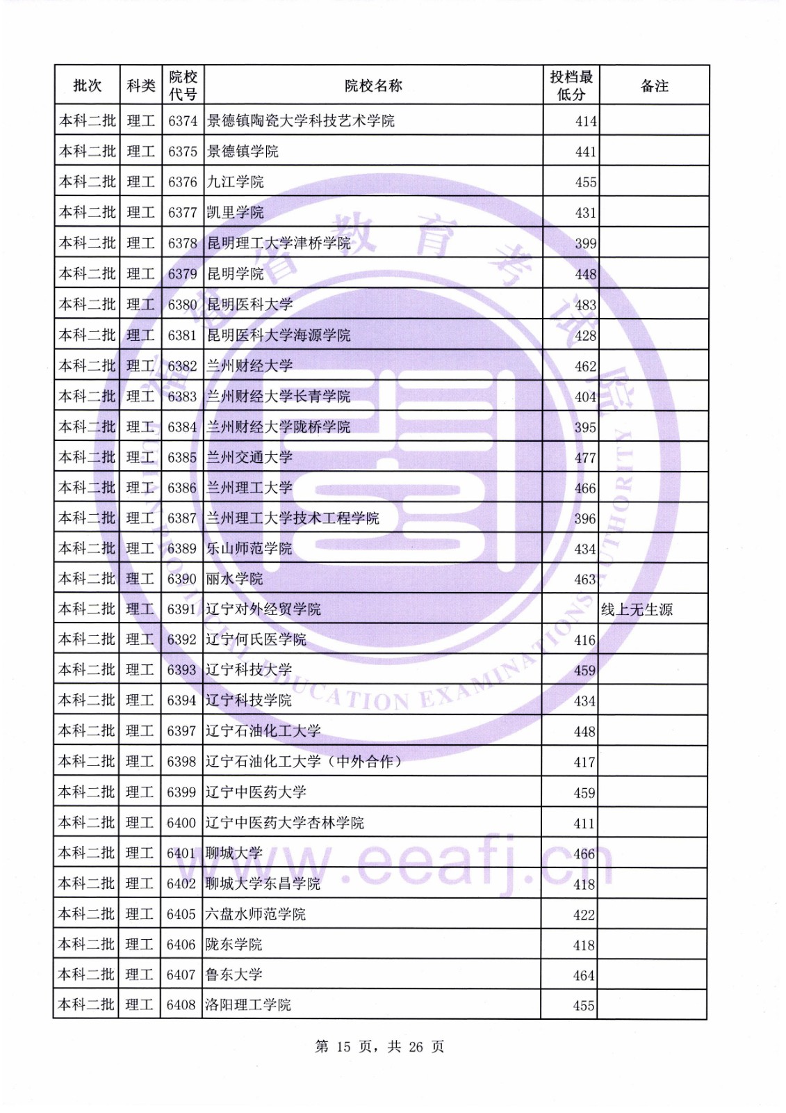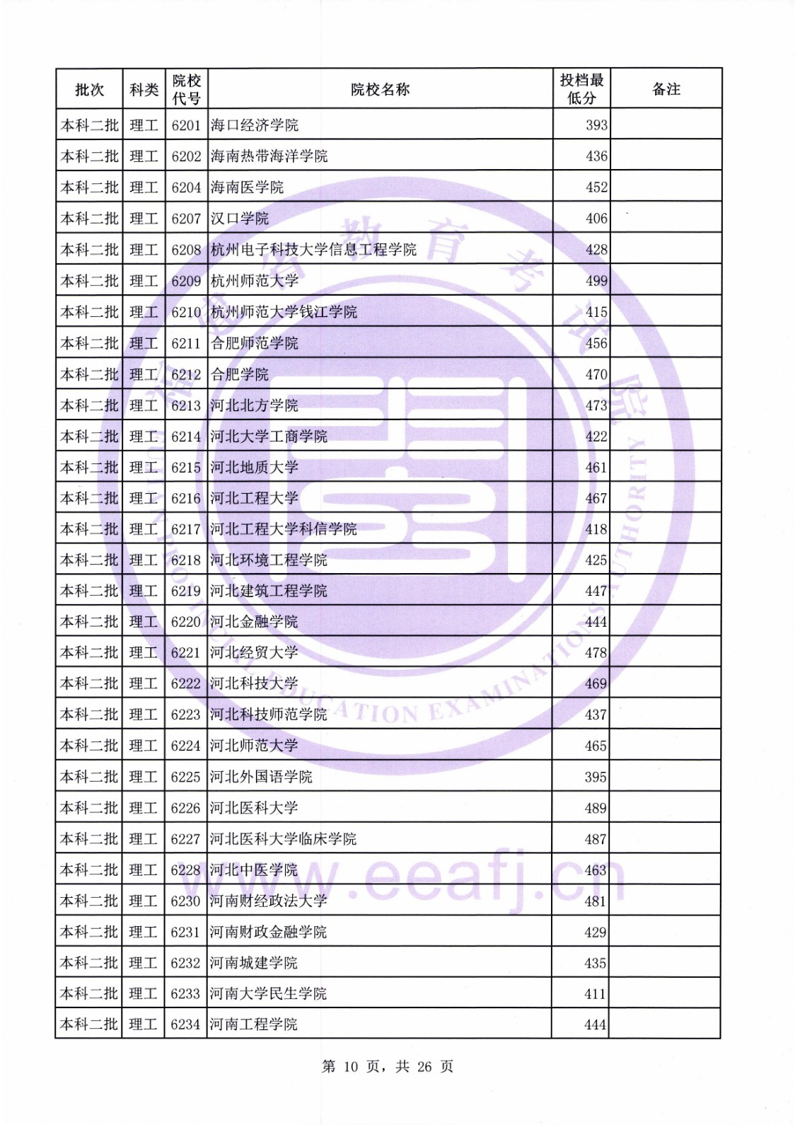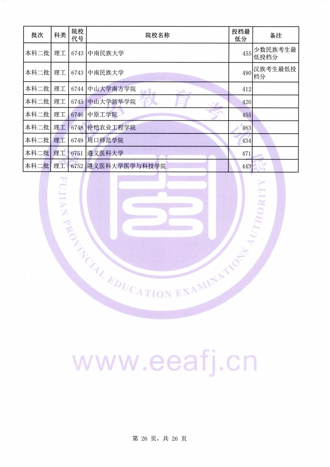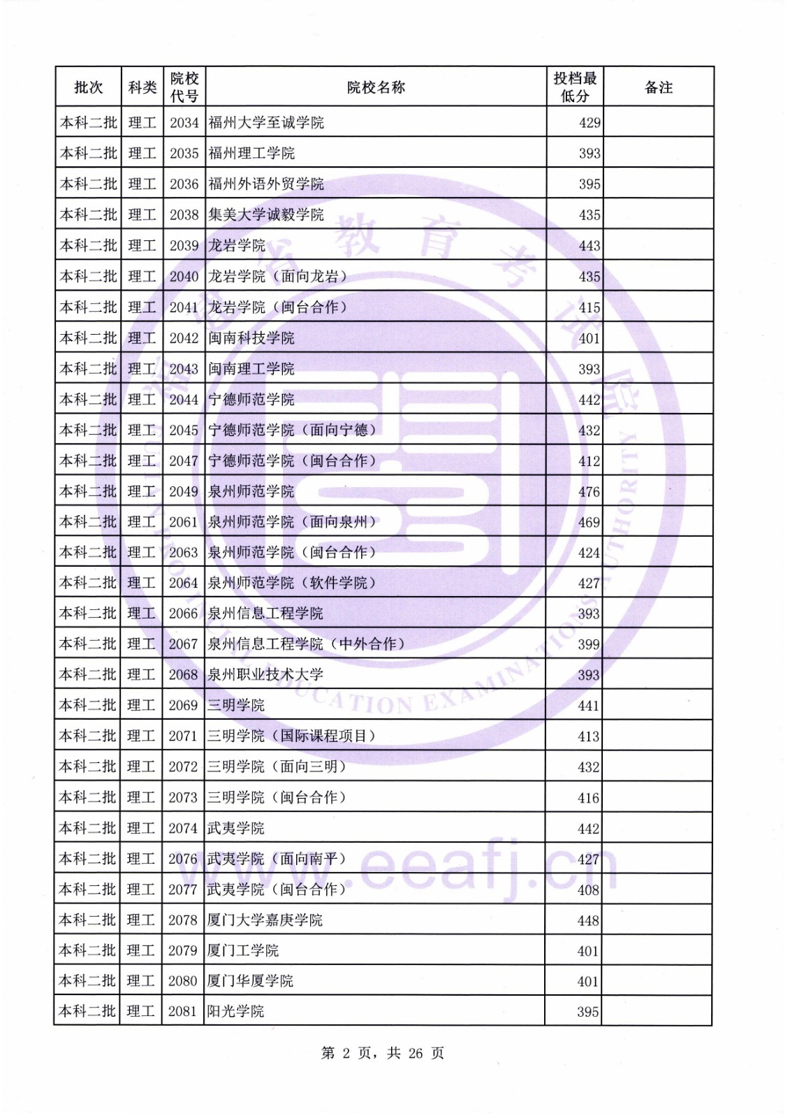 2019年福建省理工类本科二批常规志愿投档最低分数线公布