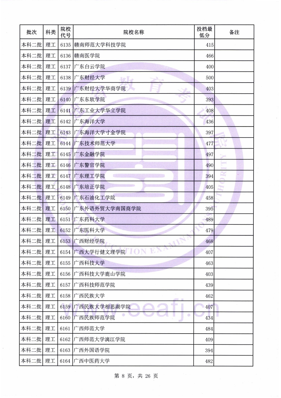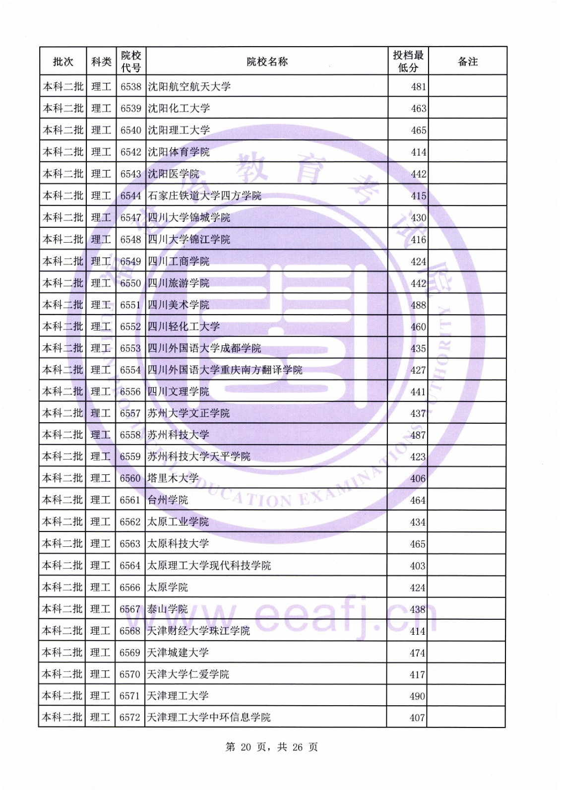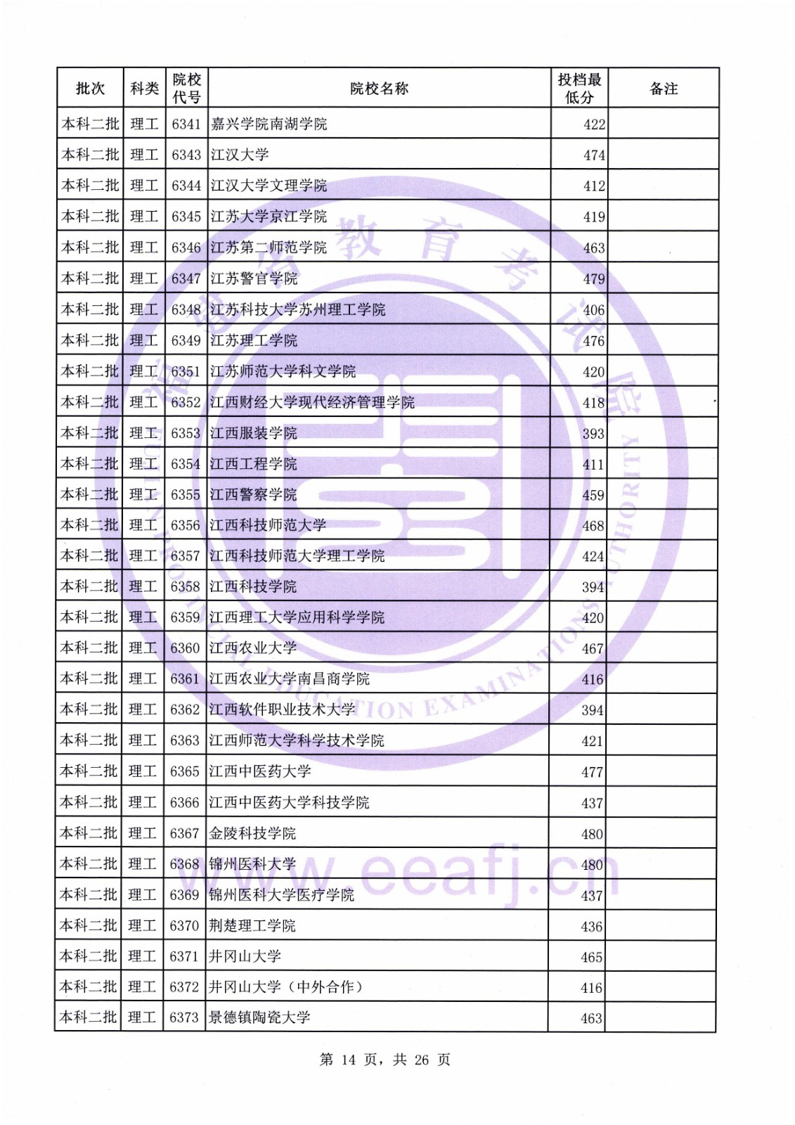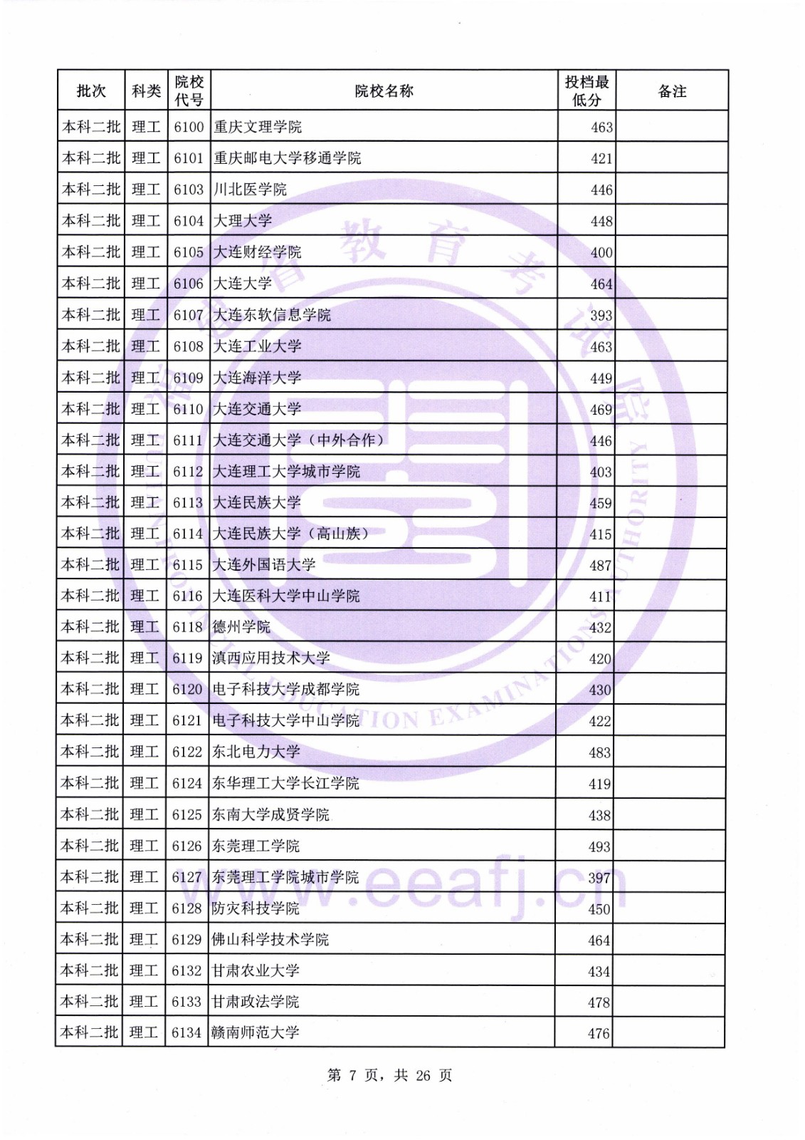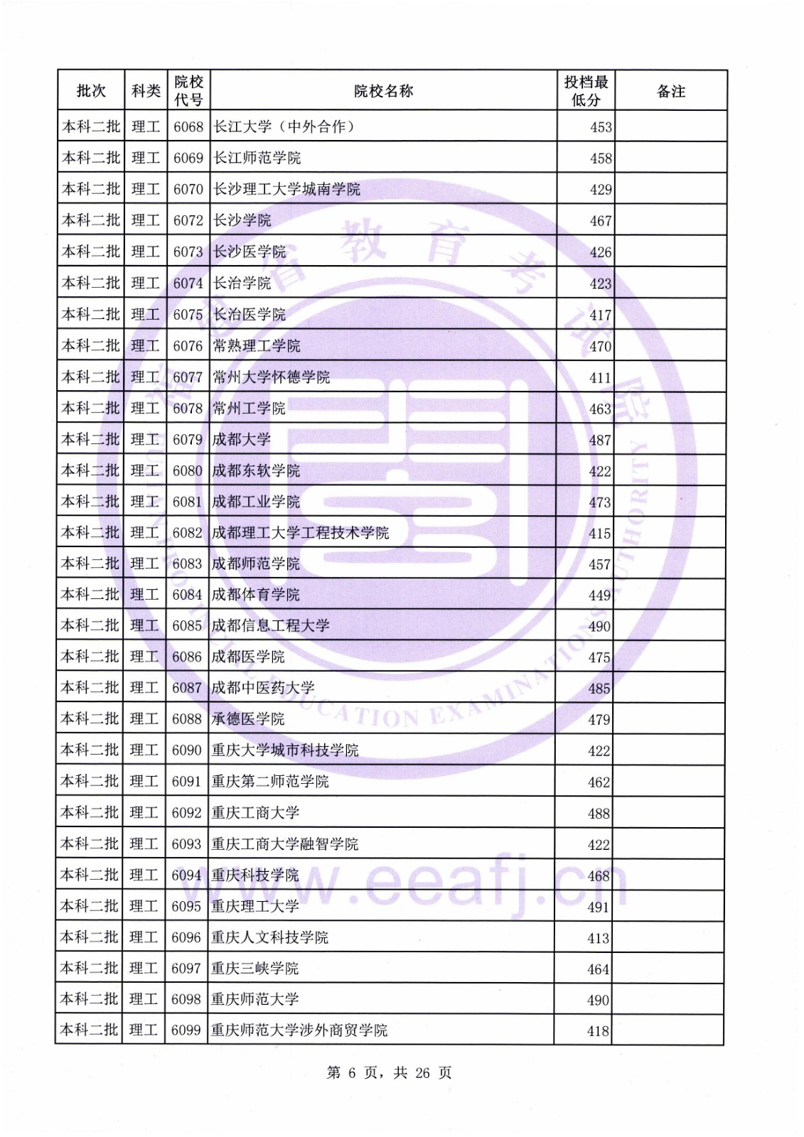 2019年福建省理工类本科二批常规志愿投档最低分数线公布