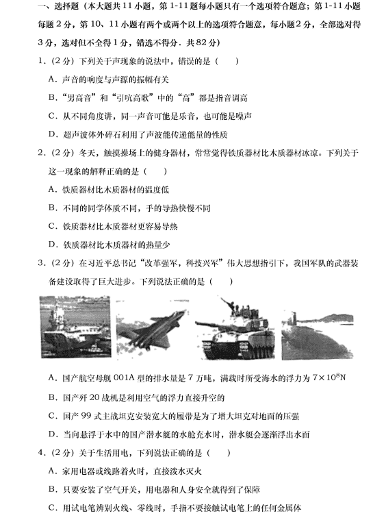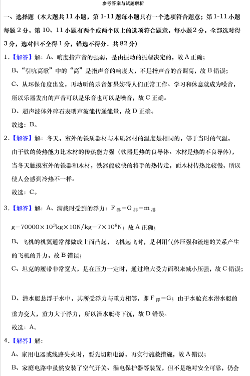 2019年湖北省仙桃市中考物理试题及答案(已公布)