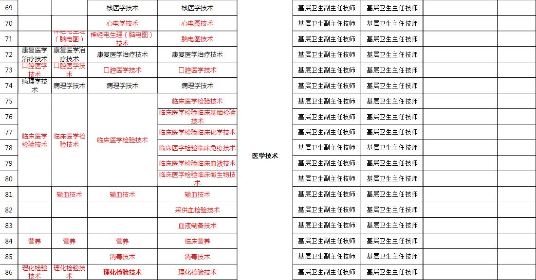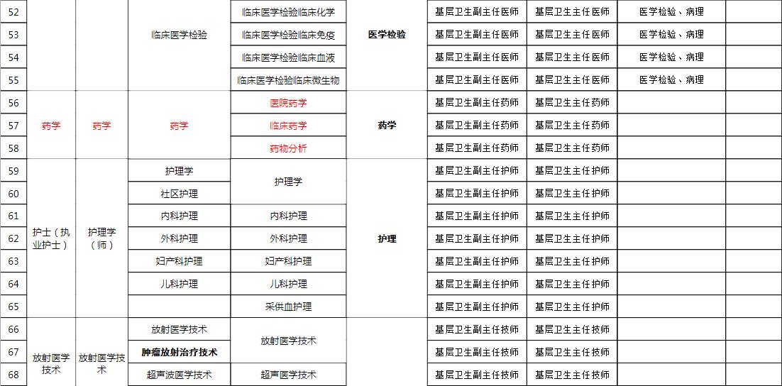 2019年四川省基层卫生高级职称评审专业设置对照表