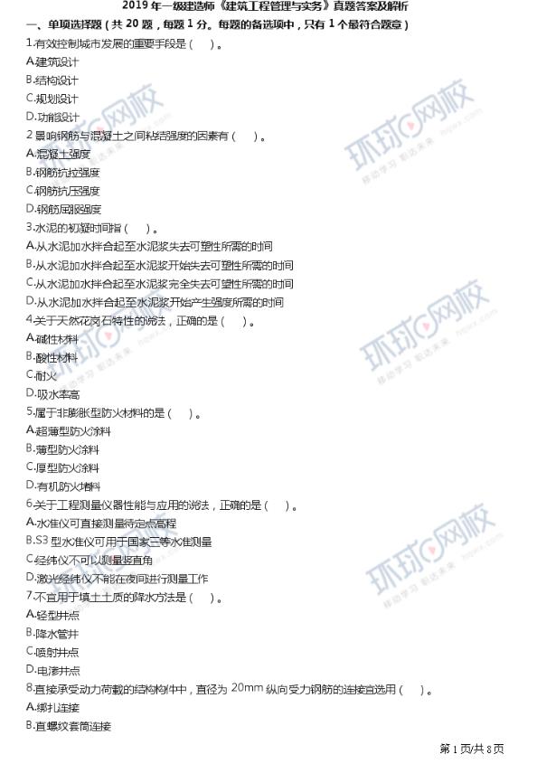【#一级建造师考试# #2019年一级建造师考试试题及答案:建设工程管理与实务【环球版】#】2019年全国一级建造师考试于9月21日、22日举行,©无忧考网在考后为广大考生整理发布了2019年一级建造师《建设工程管理与实务》考试试题及答案,供考生们参考估分。在此预祝各位考生取得优异的成绩!