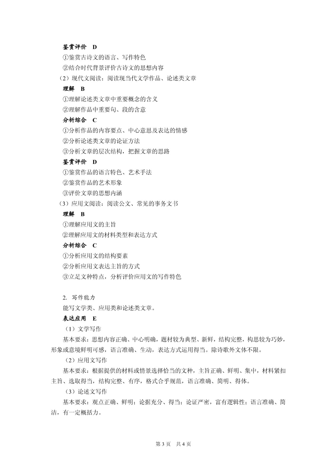 2020年重庆市普通高校专升本《大学语文》统一选拔考试大纲