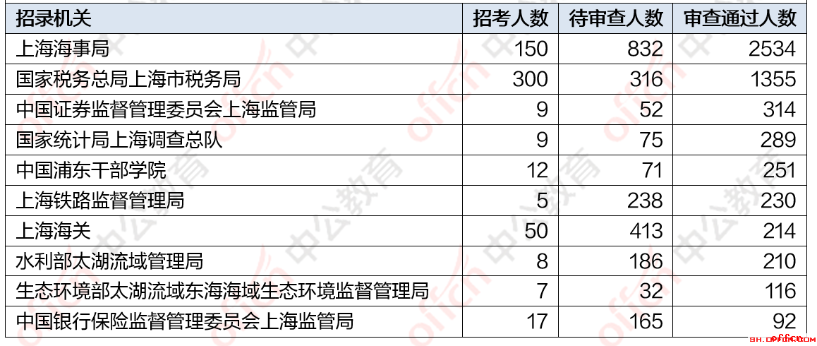 为帮助广大考生更清晰的了解今日报名情况,©无忧考网整理了审核通过人数前十位的部门以及竞争比例最激烈的十大部门,供广大考生参考:
