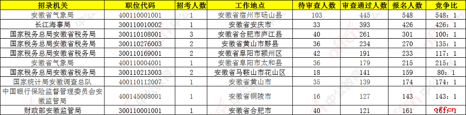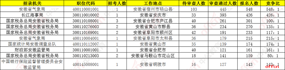一、2020国考(安徽考区)报名人数最多前十职位[截至21日9时]