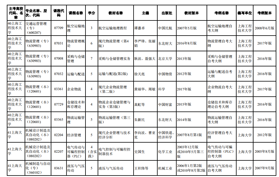 网从上海市教育考试院了解到,2020年4月上海市高等教育自学考试市级统考课程教材考纲书目表已公布,现将有关事宜通知如下: