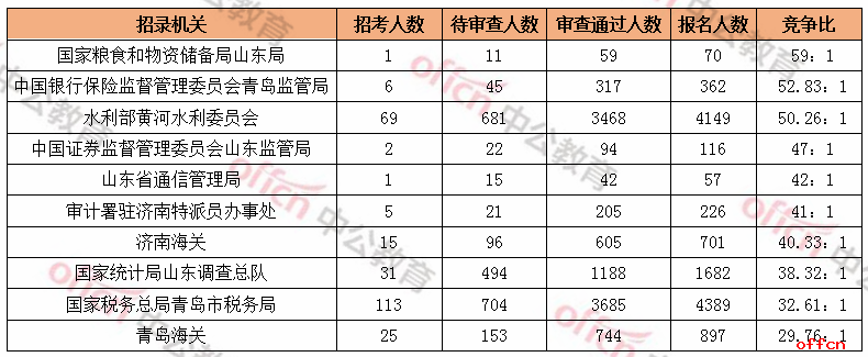 从竞争比来讲,目前竞争比较高的部门为国家粮食和物资储备局山东局,竞争比例达59:1。去年此时,竞争比较高的部门为国家税务总局山东省税务局。
