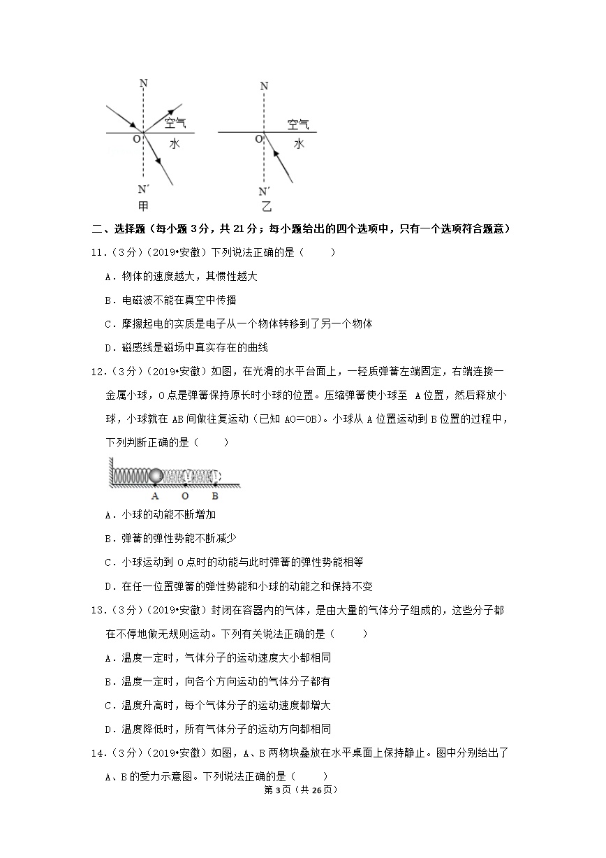 ®无忧考网_2019年安徽省中考物理试卷真题及答案解析2.jpg"/>