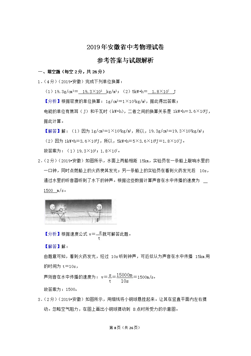 【文档名称】 2019年安徽省中考物理试卷真题及答案解析(Word版).doc