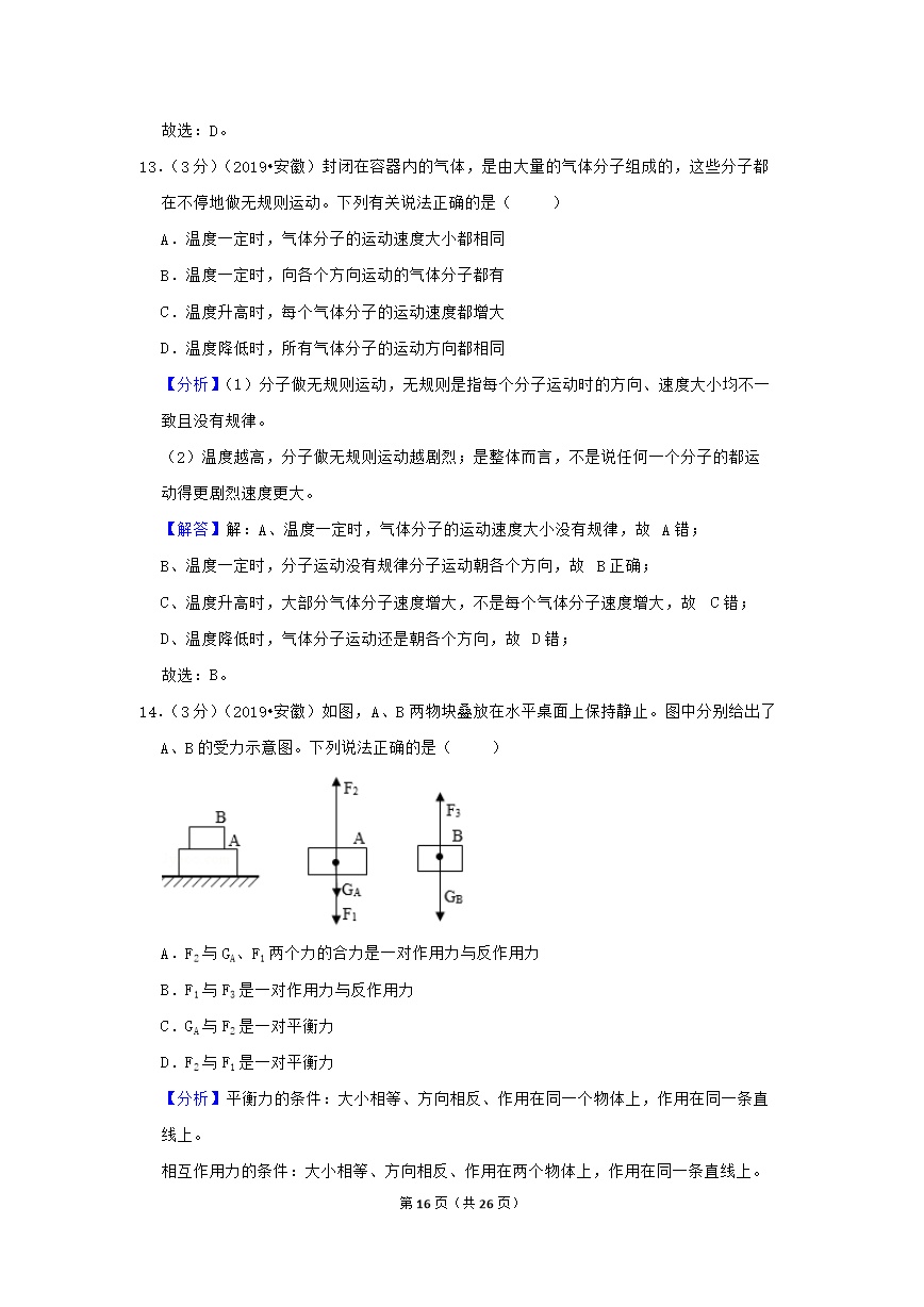®无忧考网_2019年安徽省中考物理试卷真题及答案解析13.jpg"/>