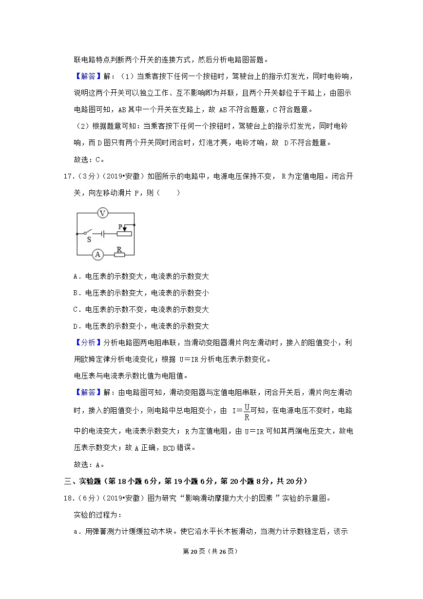 ®无忧考网_2019年安徽省中考物理试卷真题及答案解析17.jpg"/>