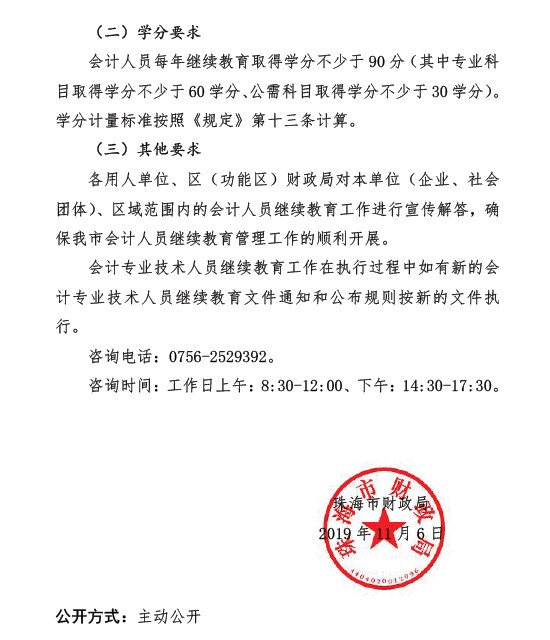 广东珠海2019年会计人员继续教育时间:2019年11月1日