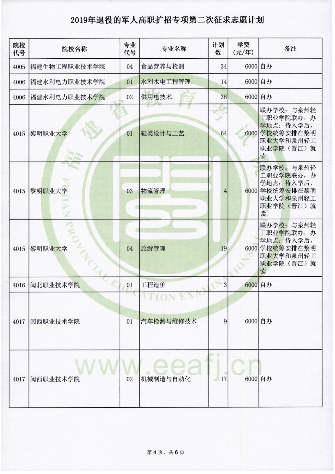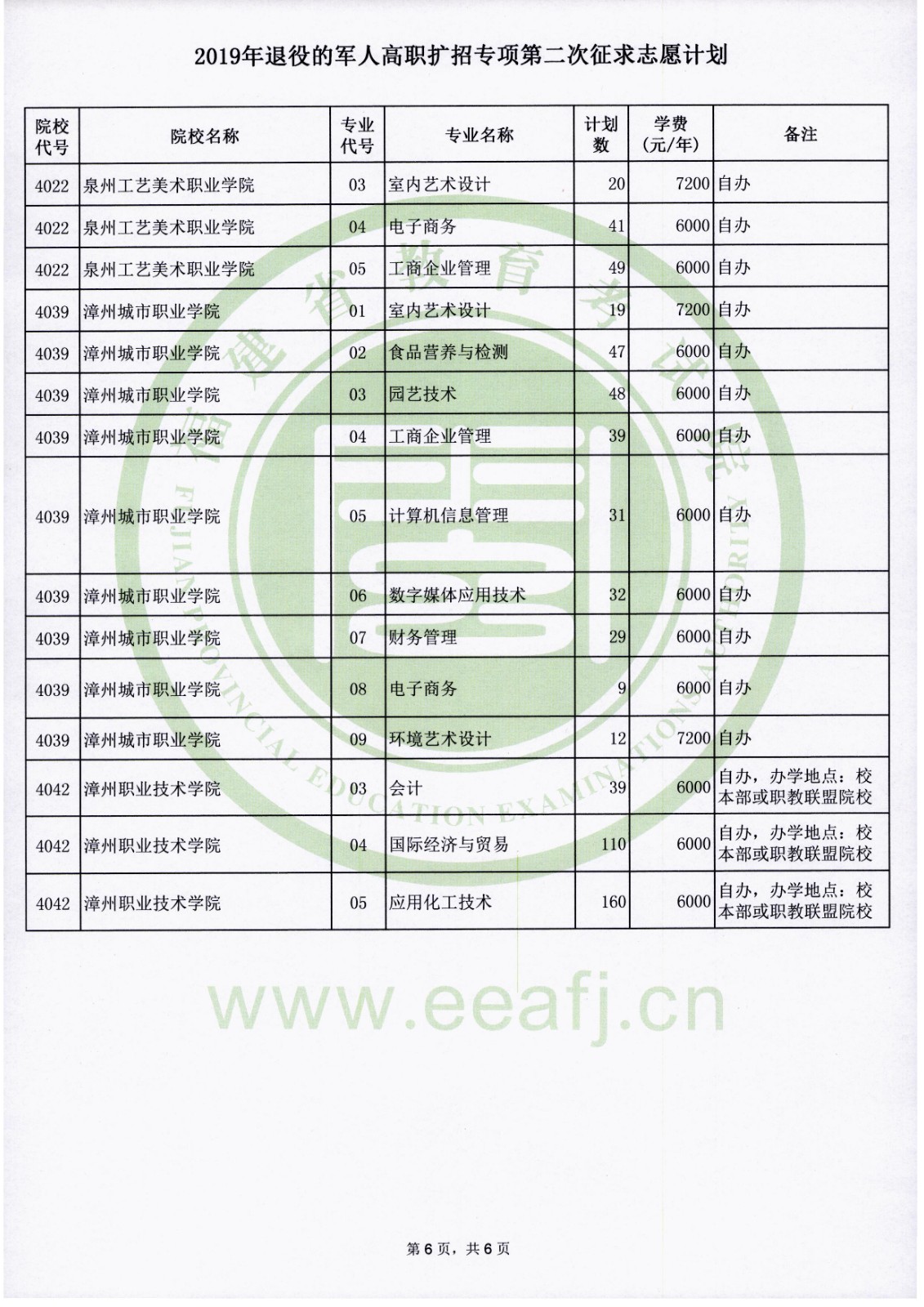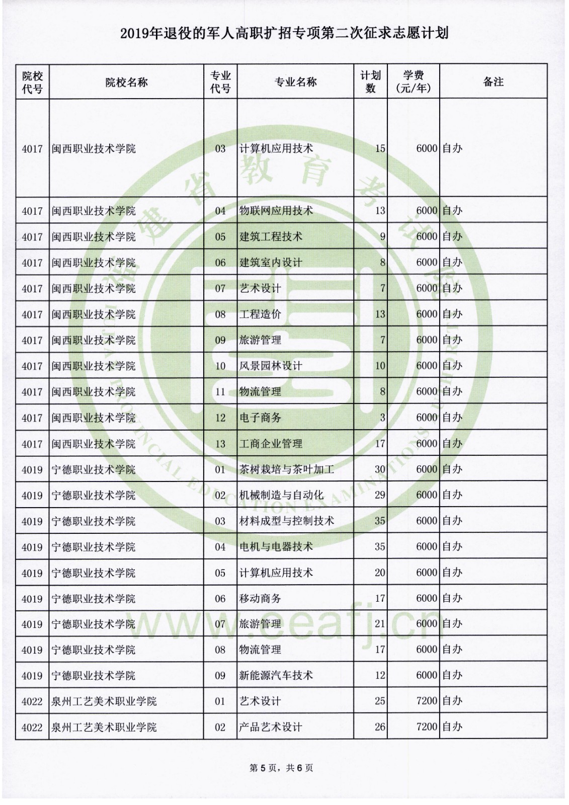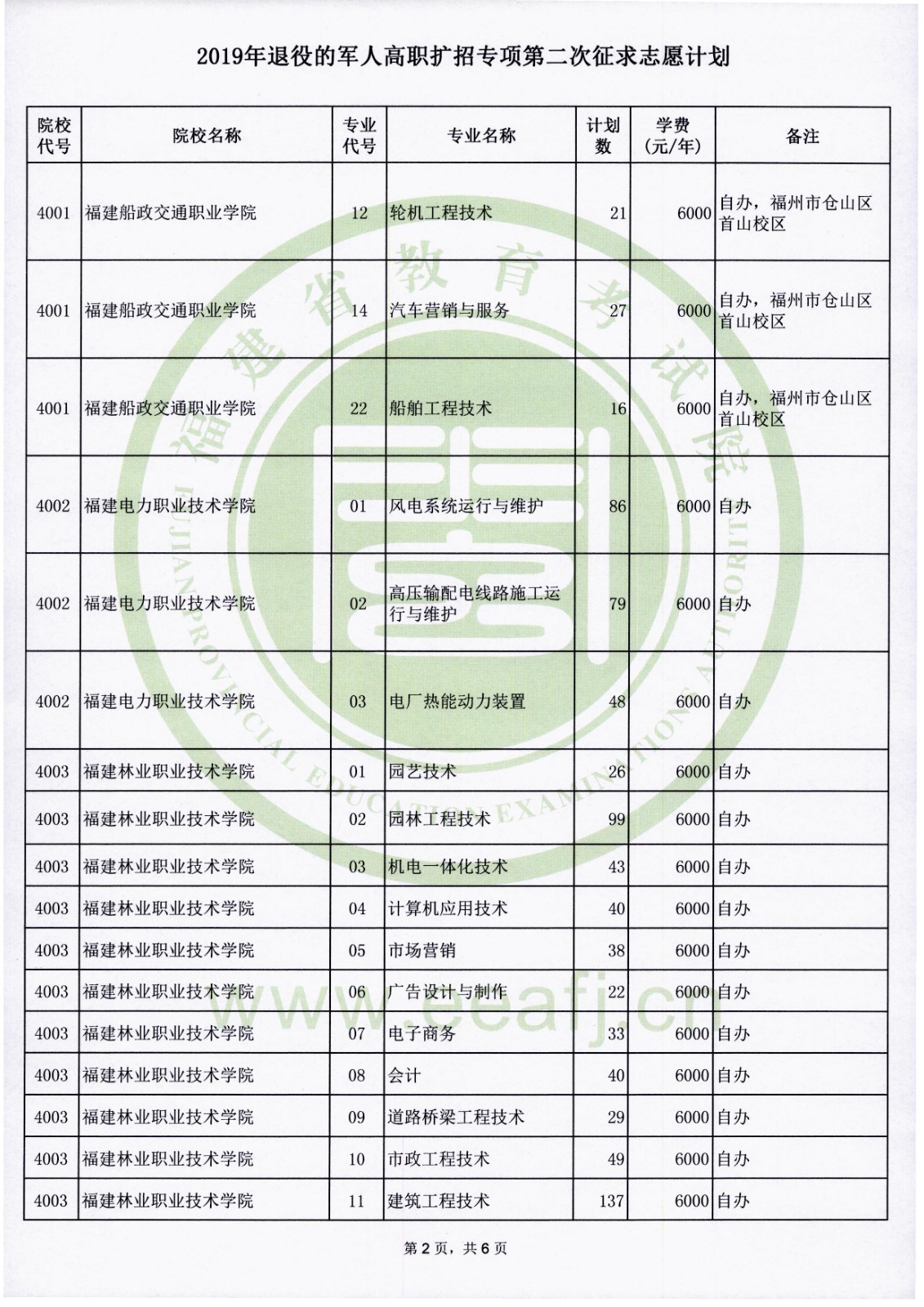 2019年福建退役的军人高职扩招专项第二次征求志愿计划
