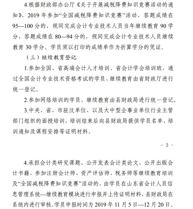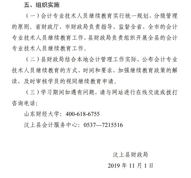 2019年山东济宁汶上县会计人员继续教育时间:2020年1月
