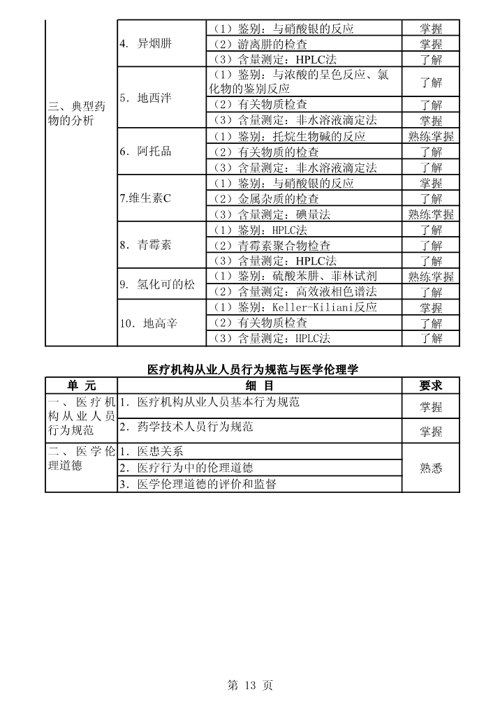 2020年卫生资格考试大纲:药学初级(士)基础知识