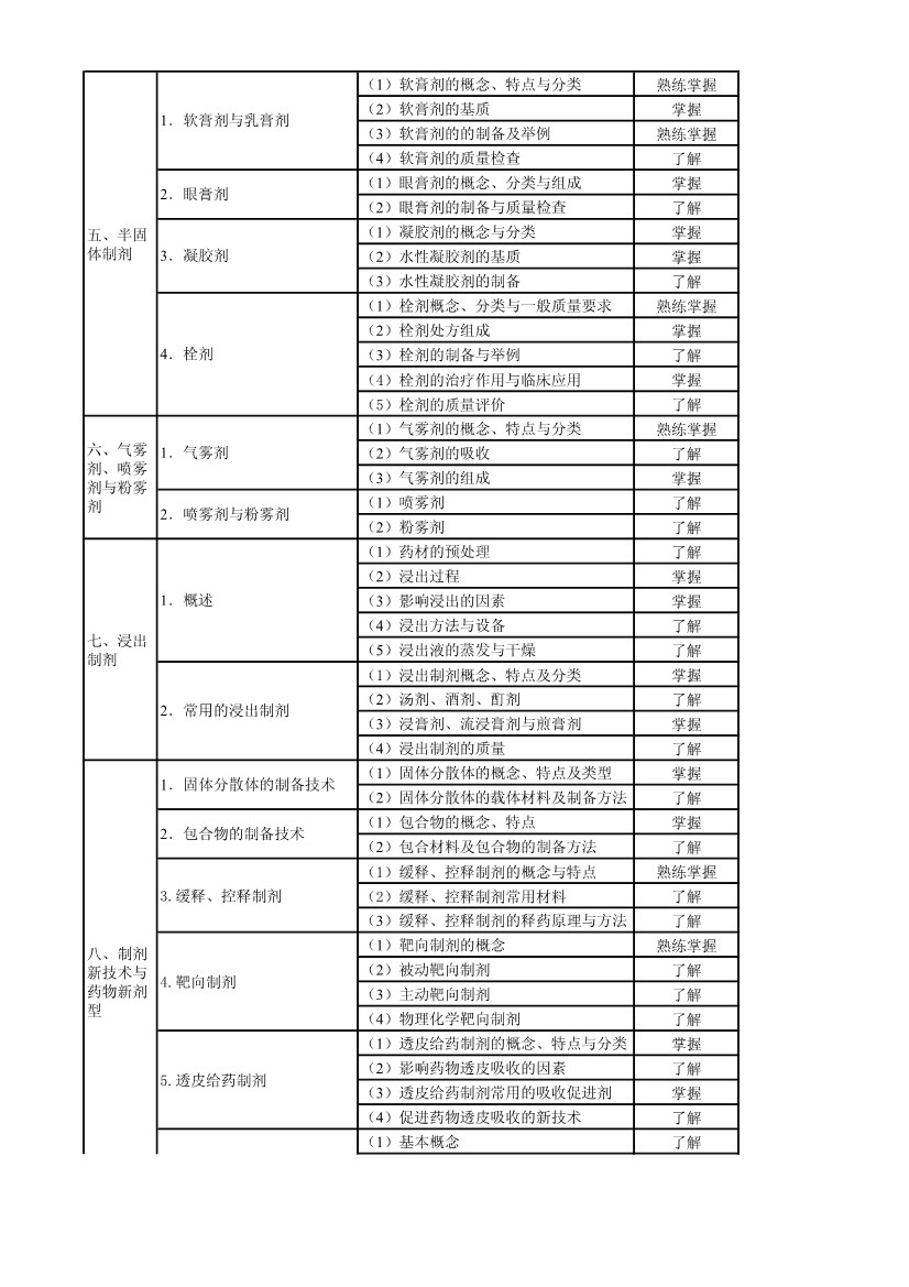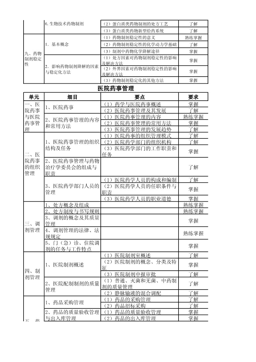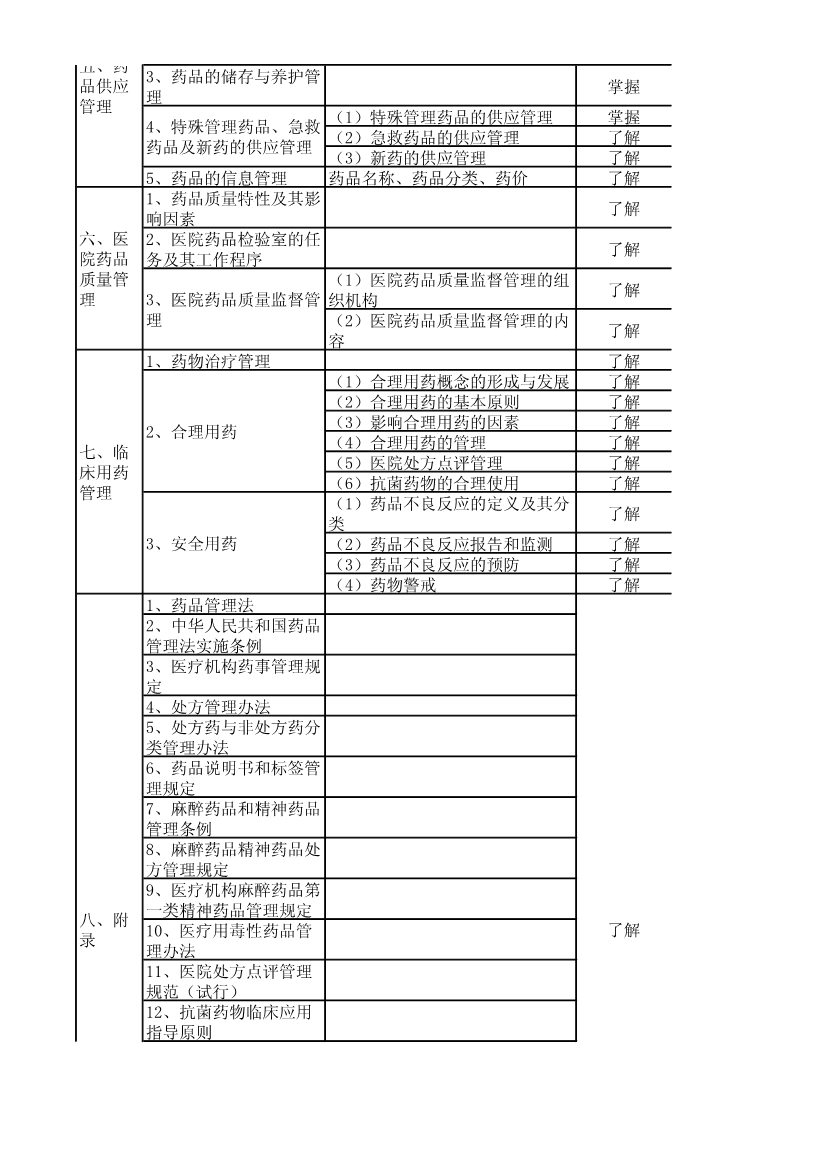 2020年卫生资格考试大纲:药学初级(士)相关专业知识