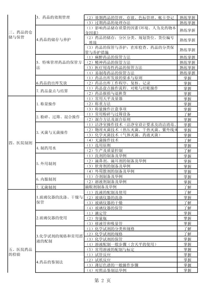 2020年卫生资格考试大纲:药学中级(主管药师)专业实践能力