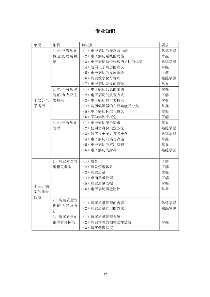 2020年卫生资格考试大纲:病案信息技术(中级)基础知识