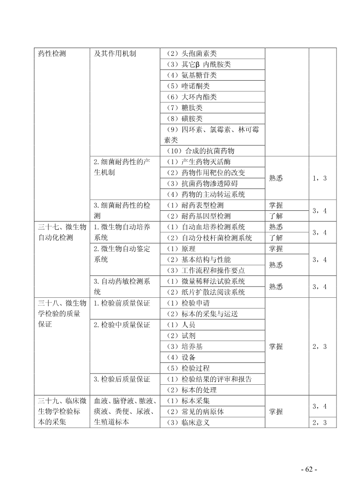 2020年卫生资格考试大纲:临床医学检验技术初级(师)