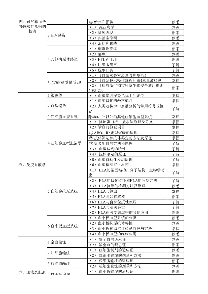 2020年卫生资格考试大纲:输血技术专业技术资格(初级师)基
