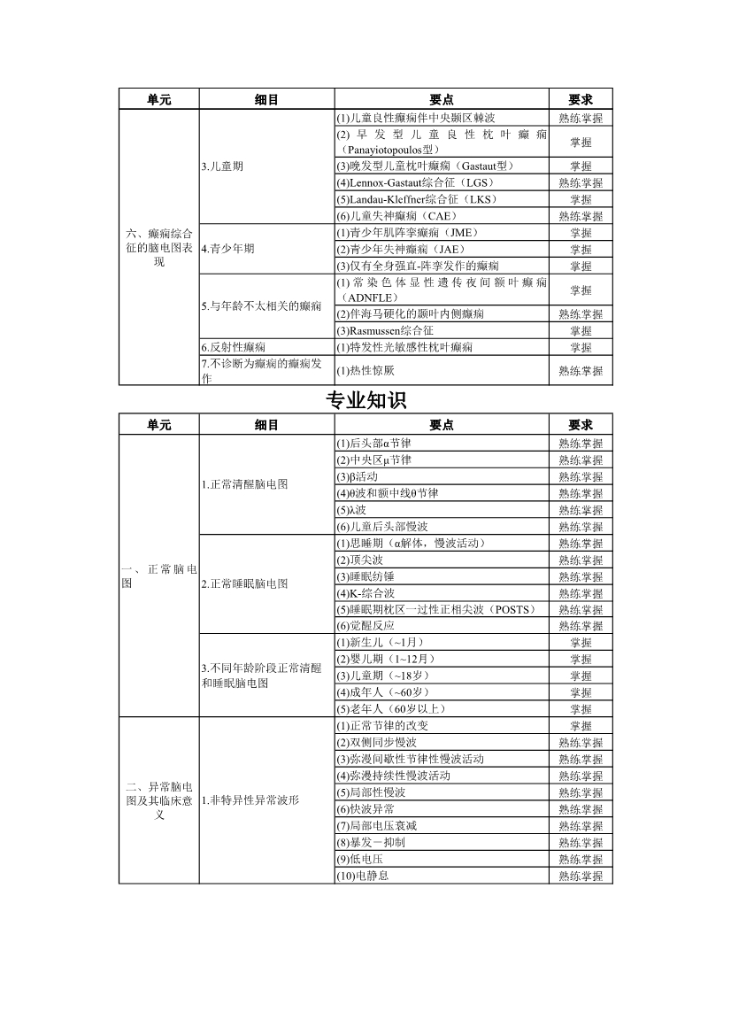 2020年卫生资格考试大纲:神经电生理(脑电图)技术(初级师