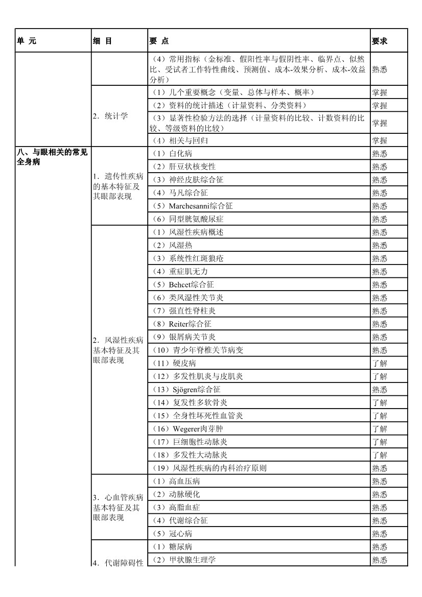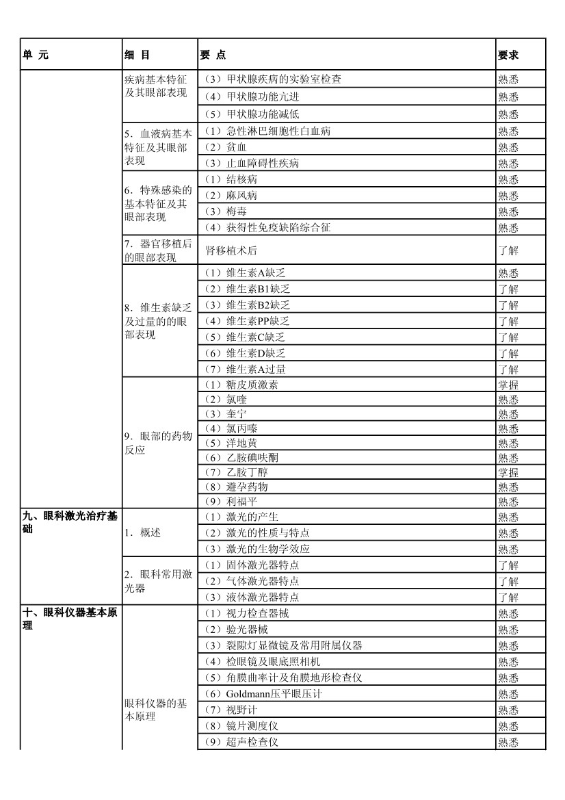 2020年卫生资格考试大纲:眼科学(相关专业知识)