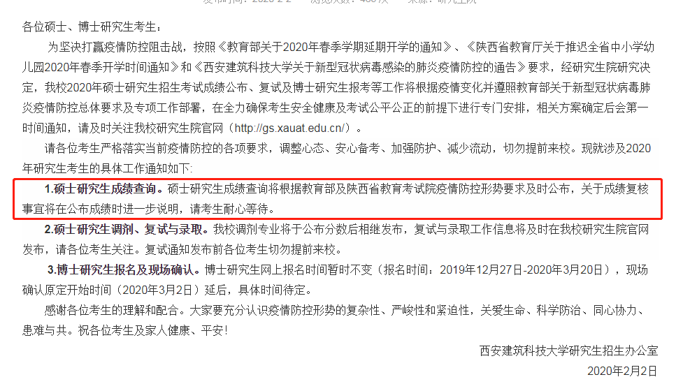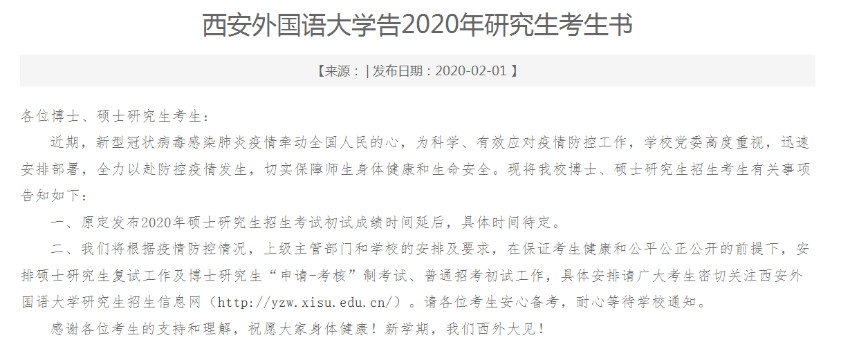 上面各公告中,陕西多所院校明确说明“根据陕西省教育考试院通知”,由此推断,整个陕西省各院校的成绩查询时间都会延迟,其复试时间相应应该也会延迟。