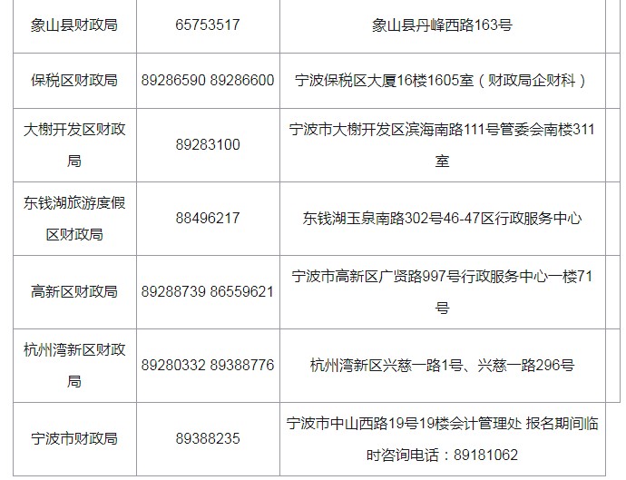 具体考试联系电话详见附件或见“宁波会计之窗”首页“咨询电话”一栏。
