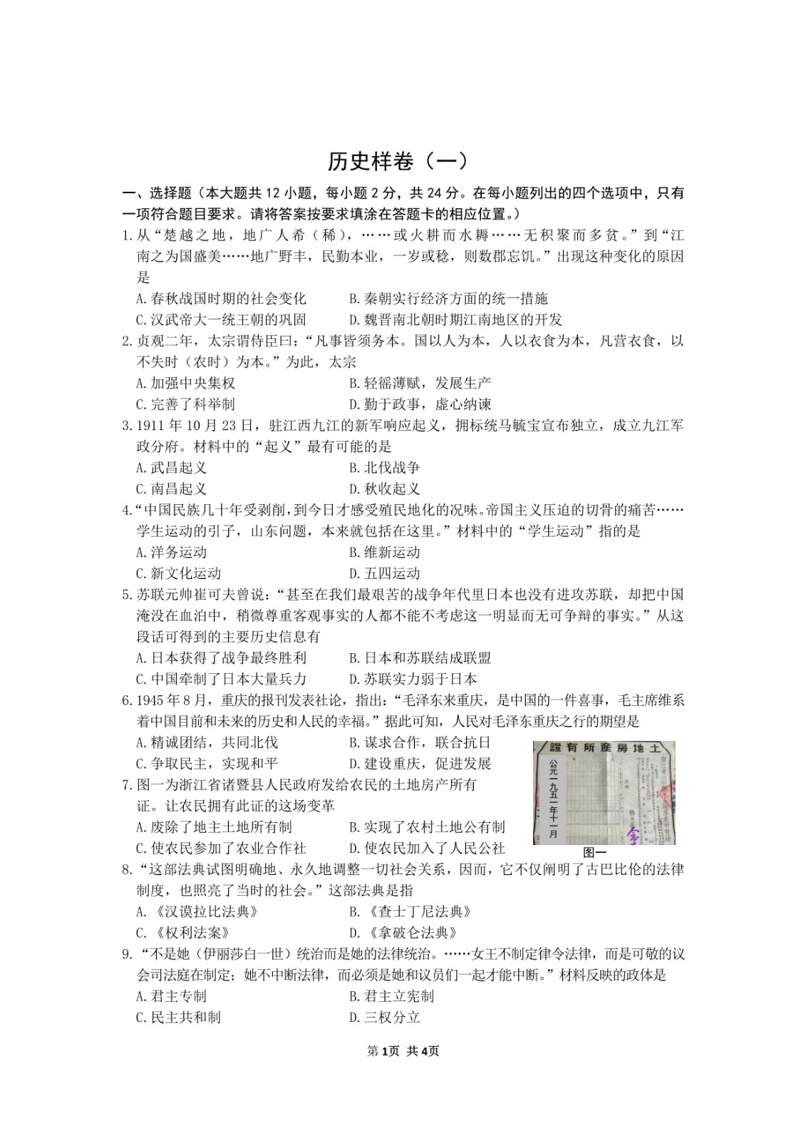 江西省2020年中等学校招生考试历史学科说明.pdf